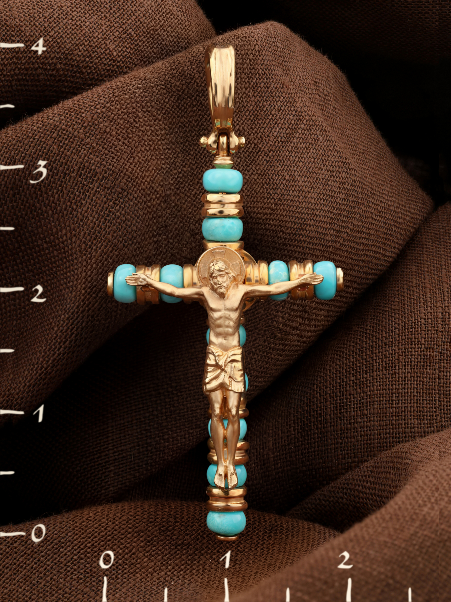 Крест из золота c бирюзой