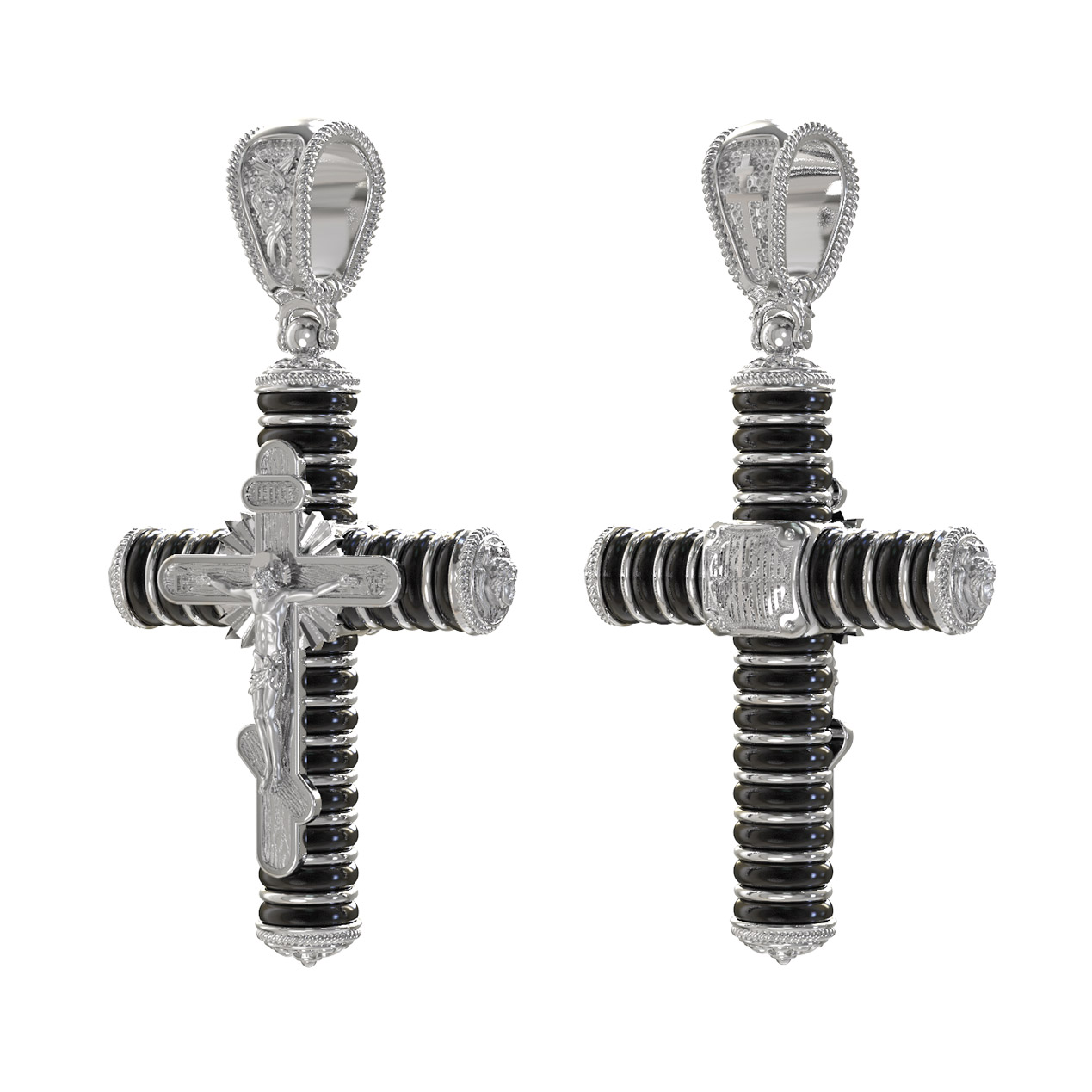 Крест из белого золота c ониксом