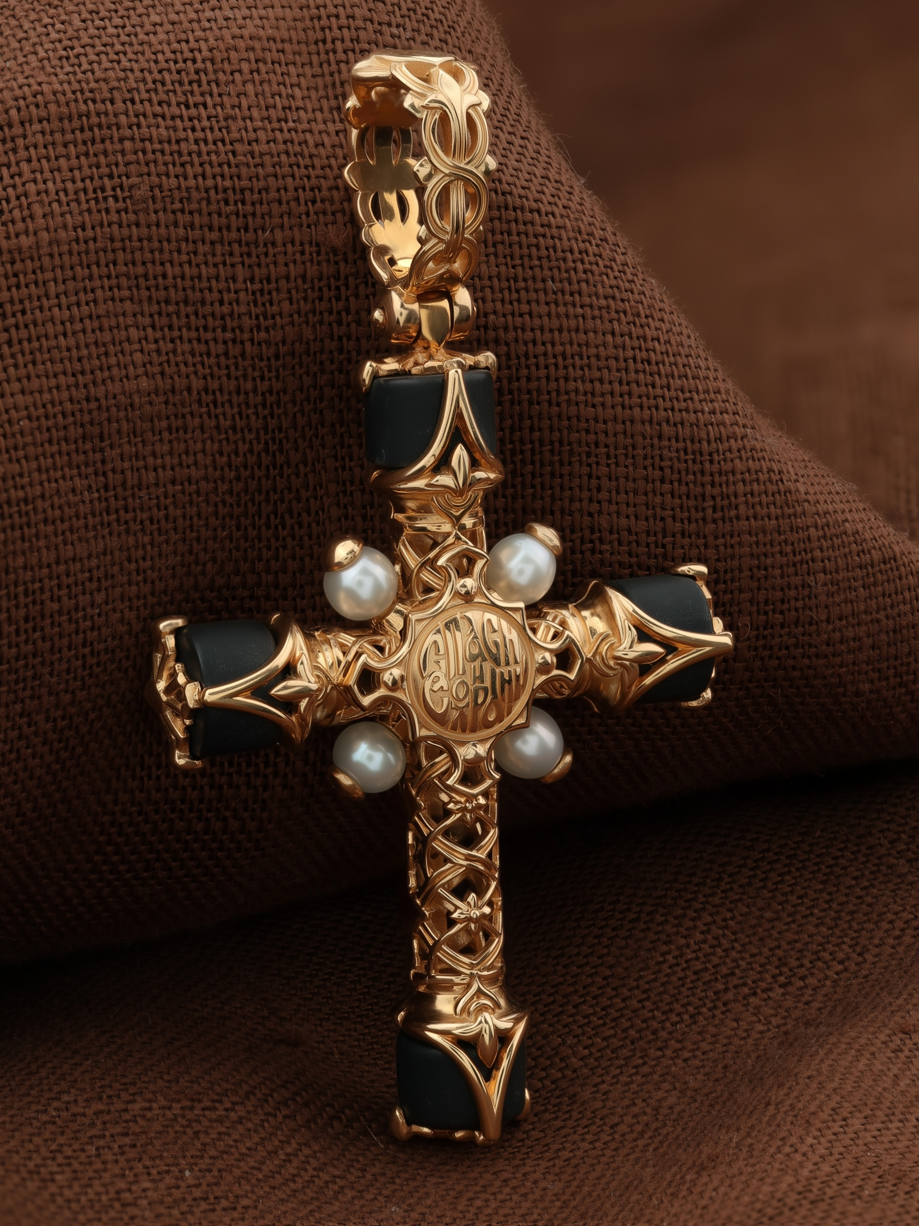 Крест из золота c ониксом и малахитом