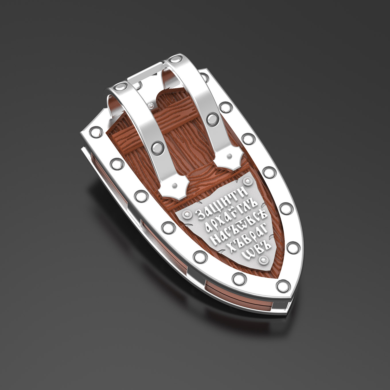 На оборотной стороне образка написаны слова молитвы: «Защити Архангел нас от всех врагов».