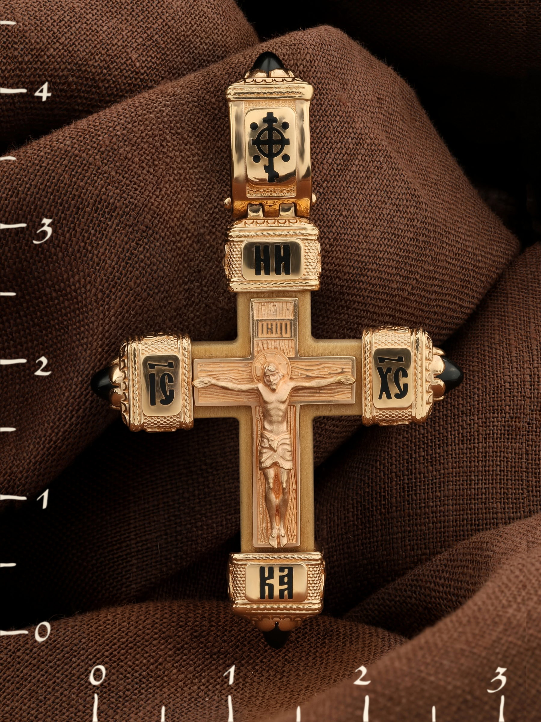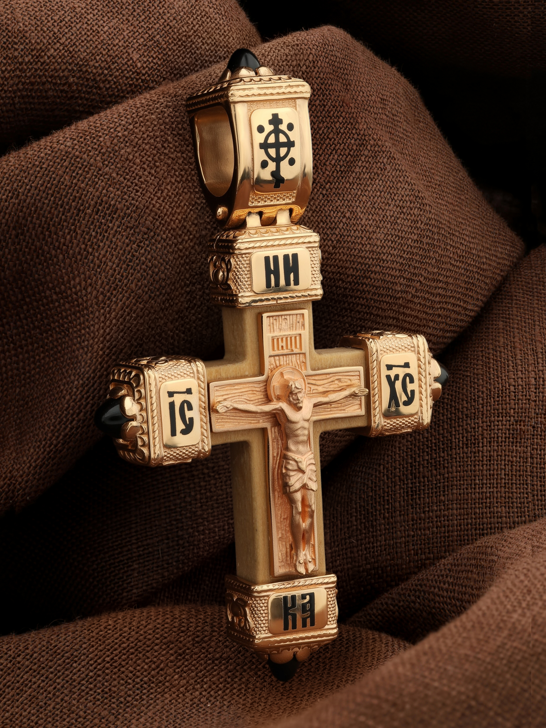 Крест из золота c эмалью, ониксом и деревом груши