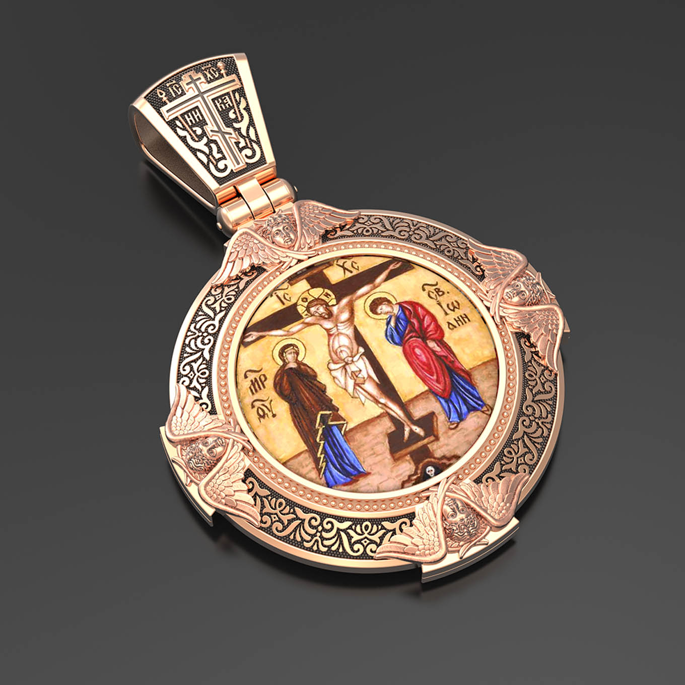 Образок из золота c эмалью, иконописью и темперой