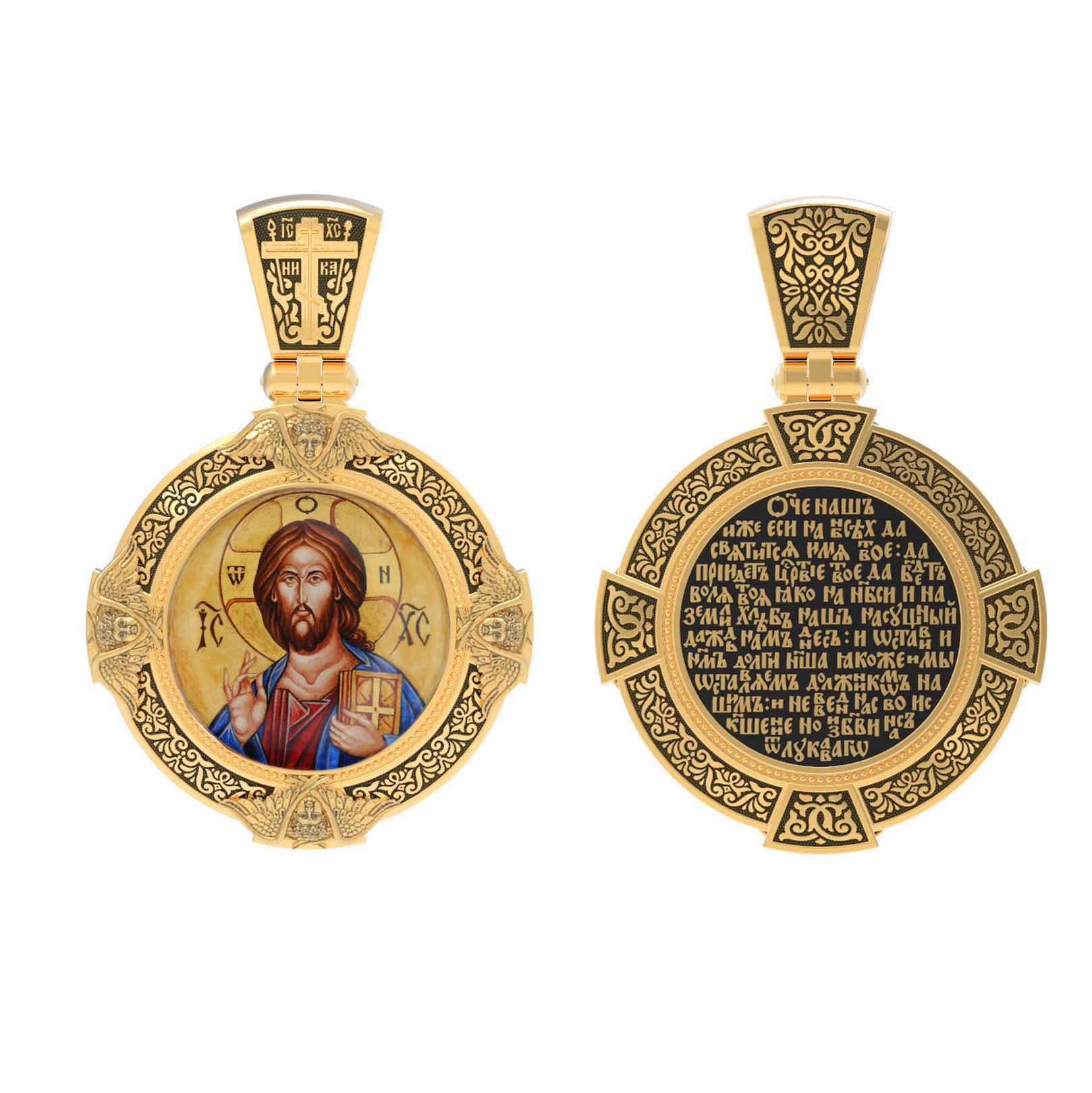 Образок из лимонного золота c эмаль, иконописью и темперой
