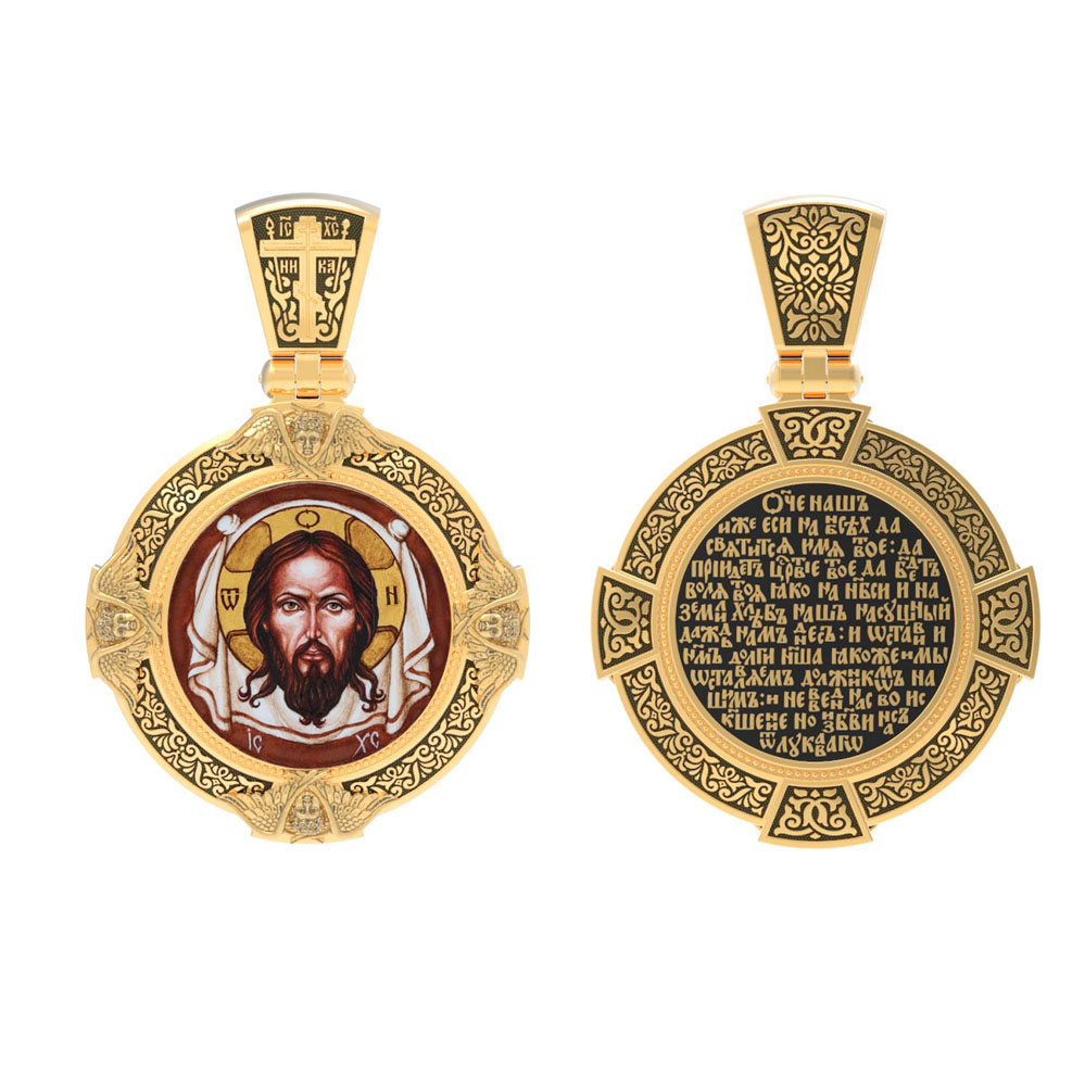 Образок из лимонного золота c эмаль, иконописью и темперой