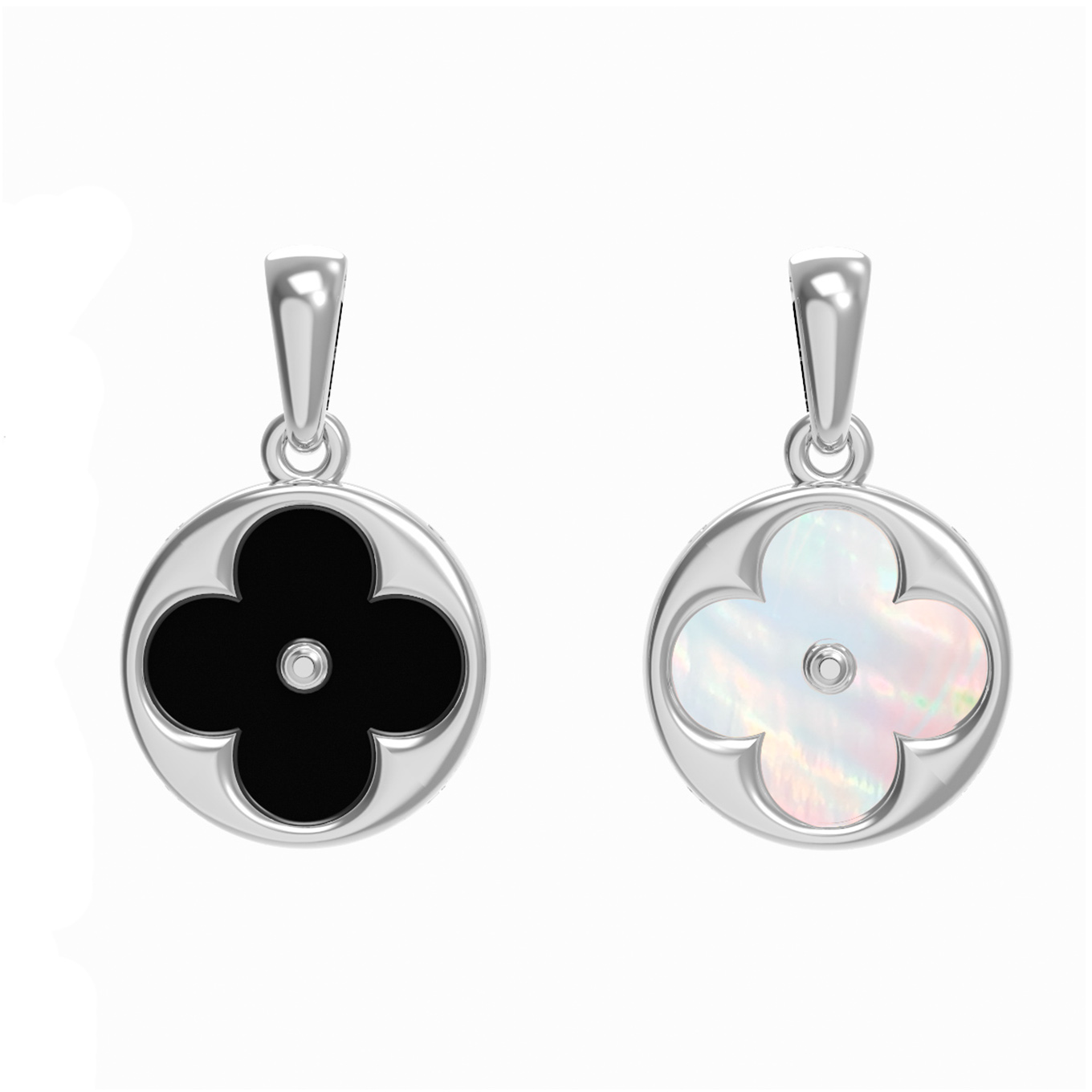 Подвеска из белого золота c ониксом и перламутром