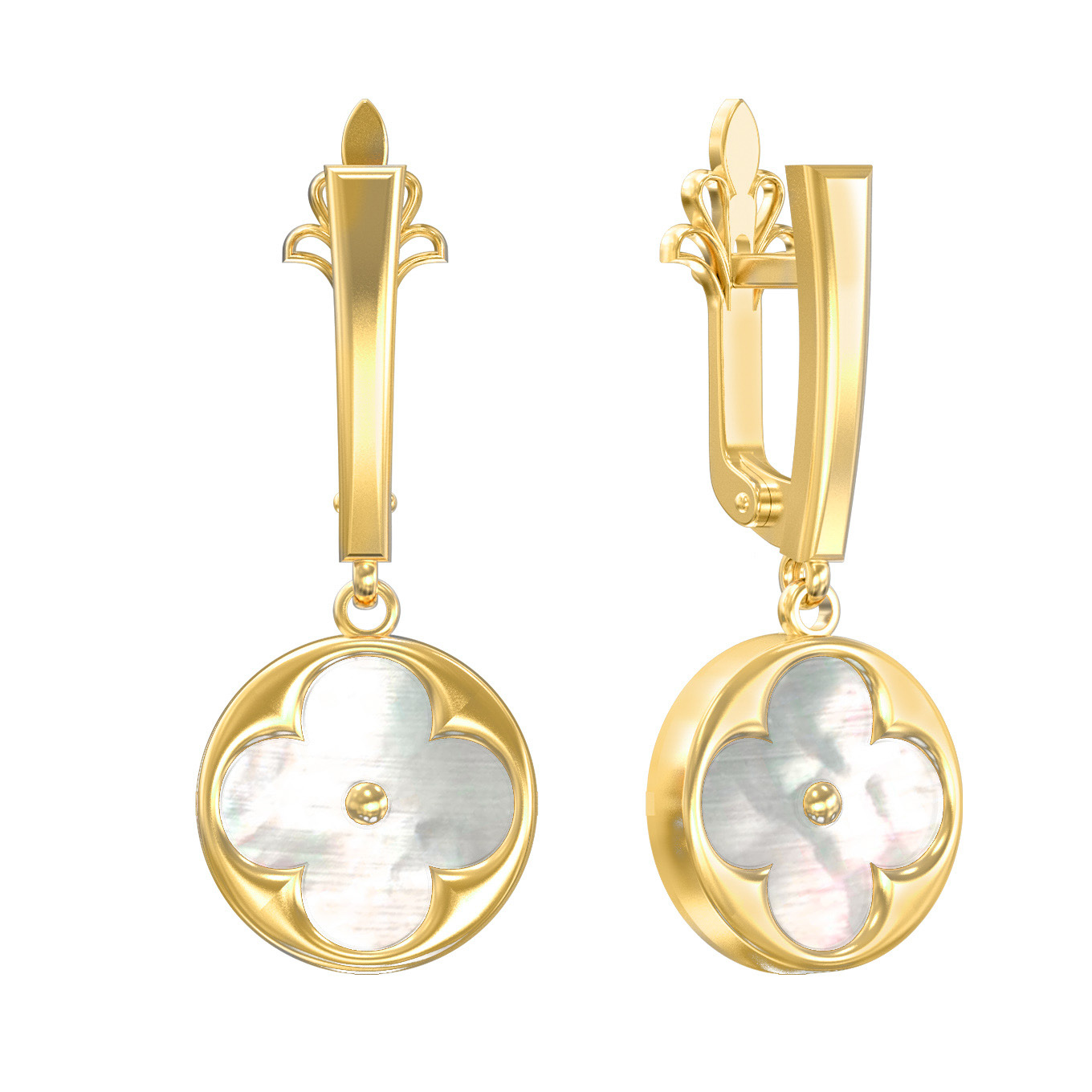 Серьги из лимонного золота c перламутром