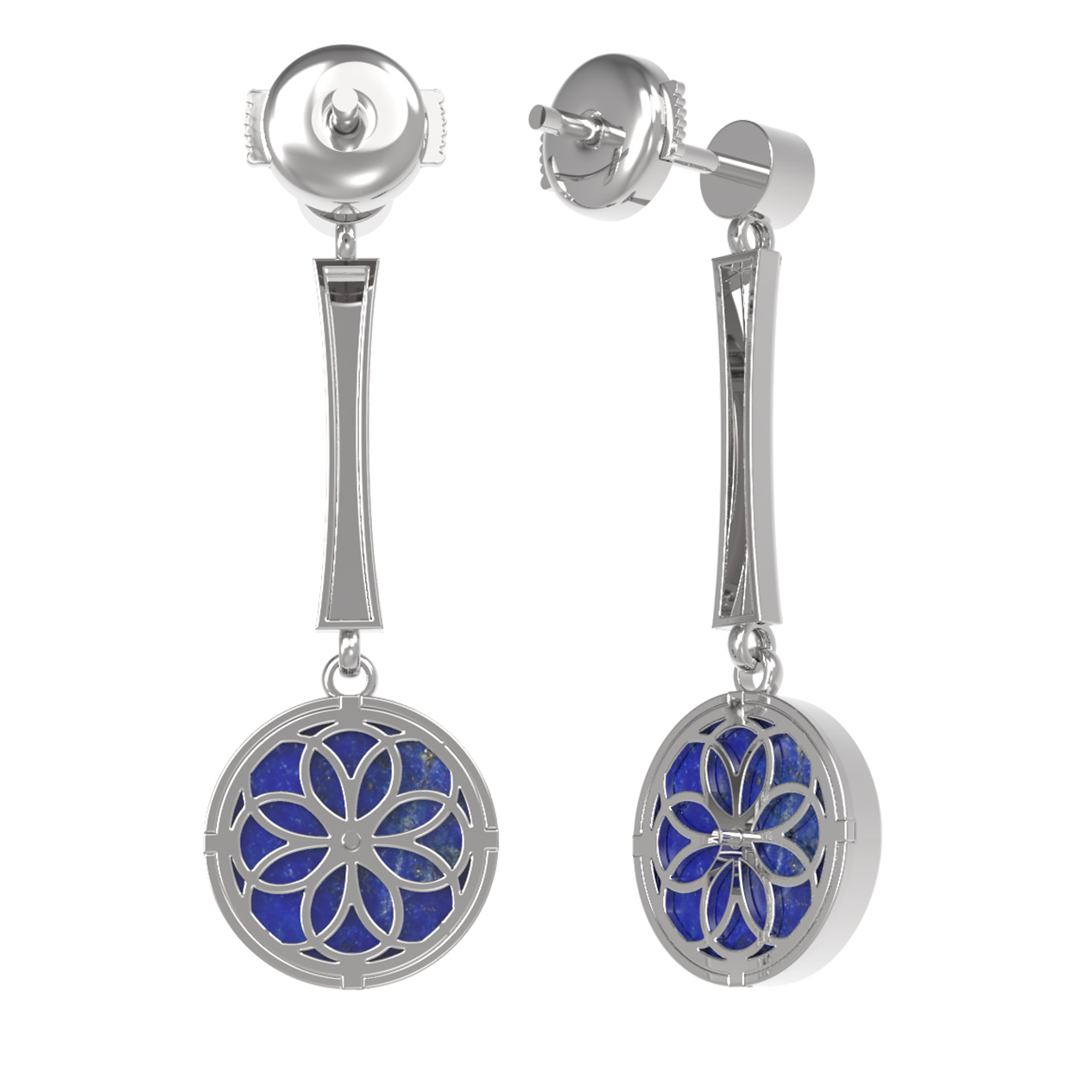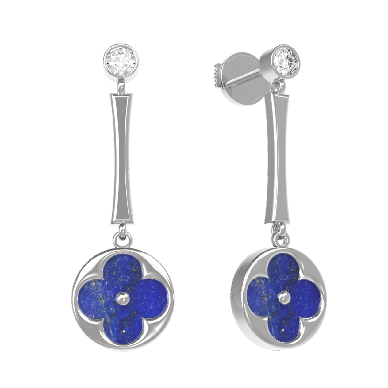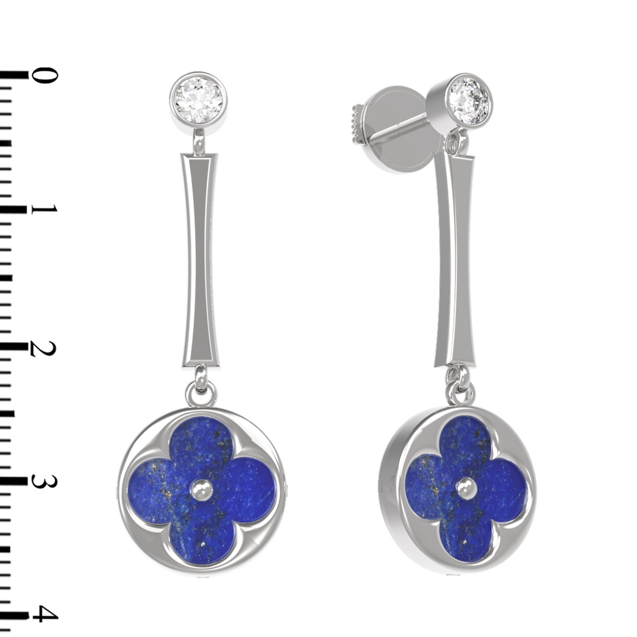 Серьги из белого золота c фианитом и лазуритом