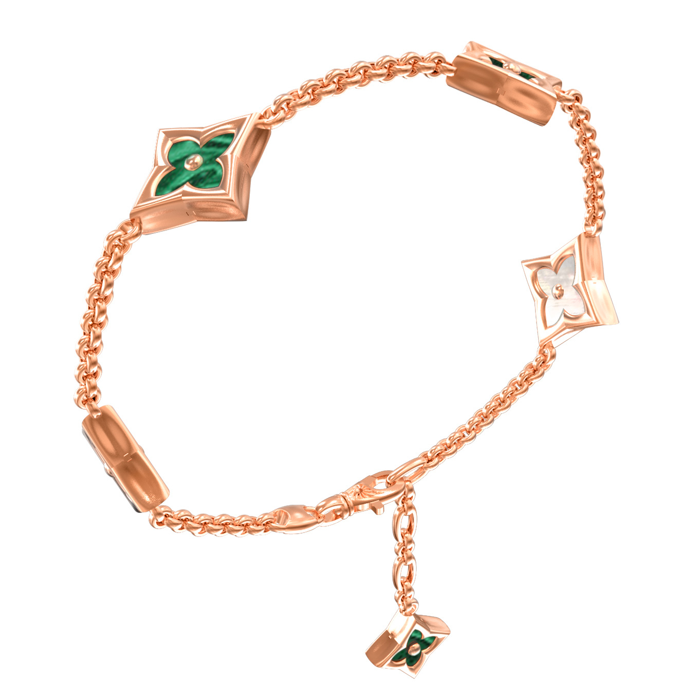 Браслет из золота c малахитом и перламутром