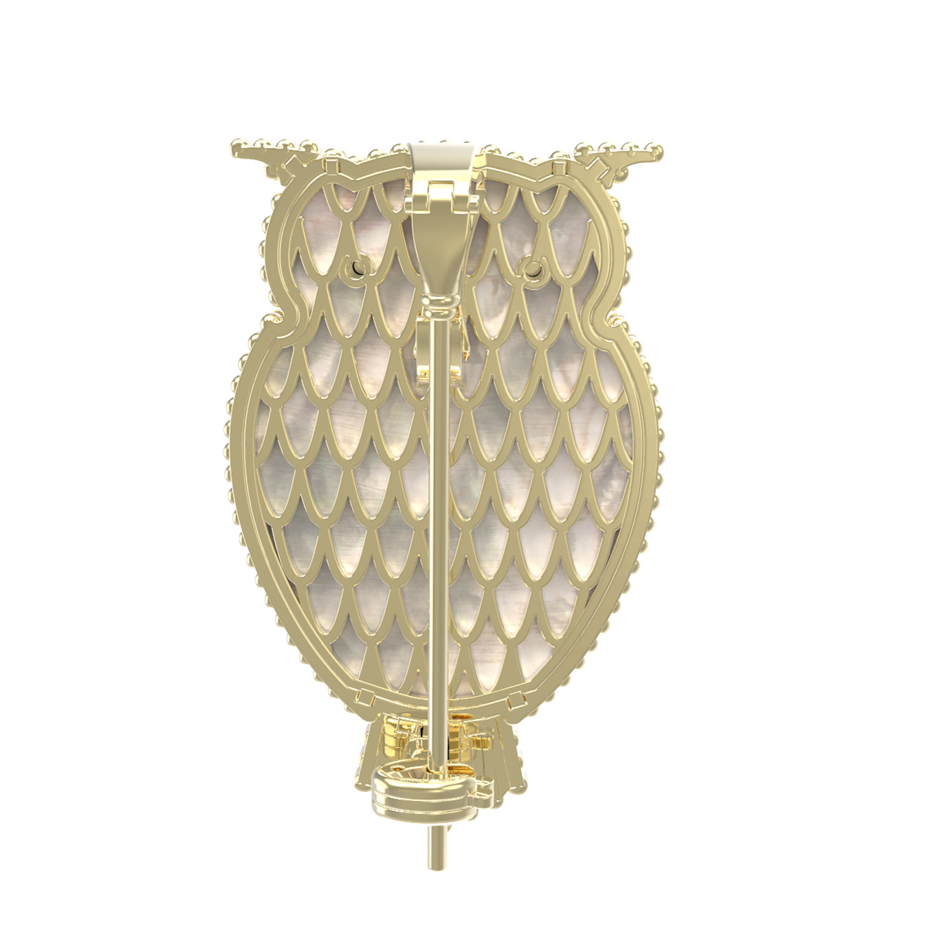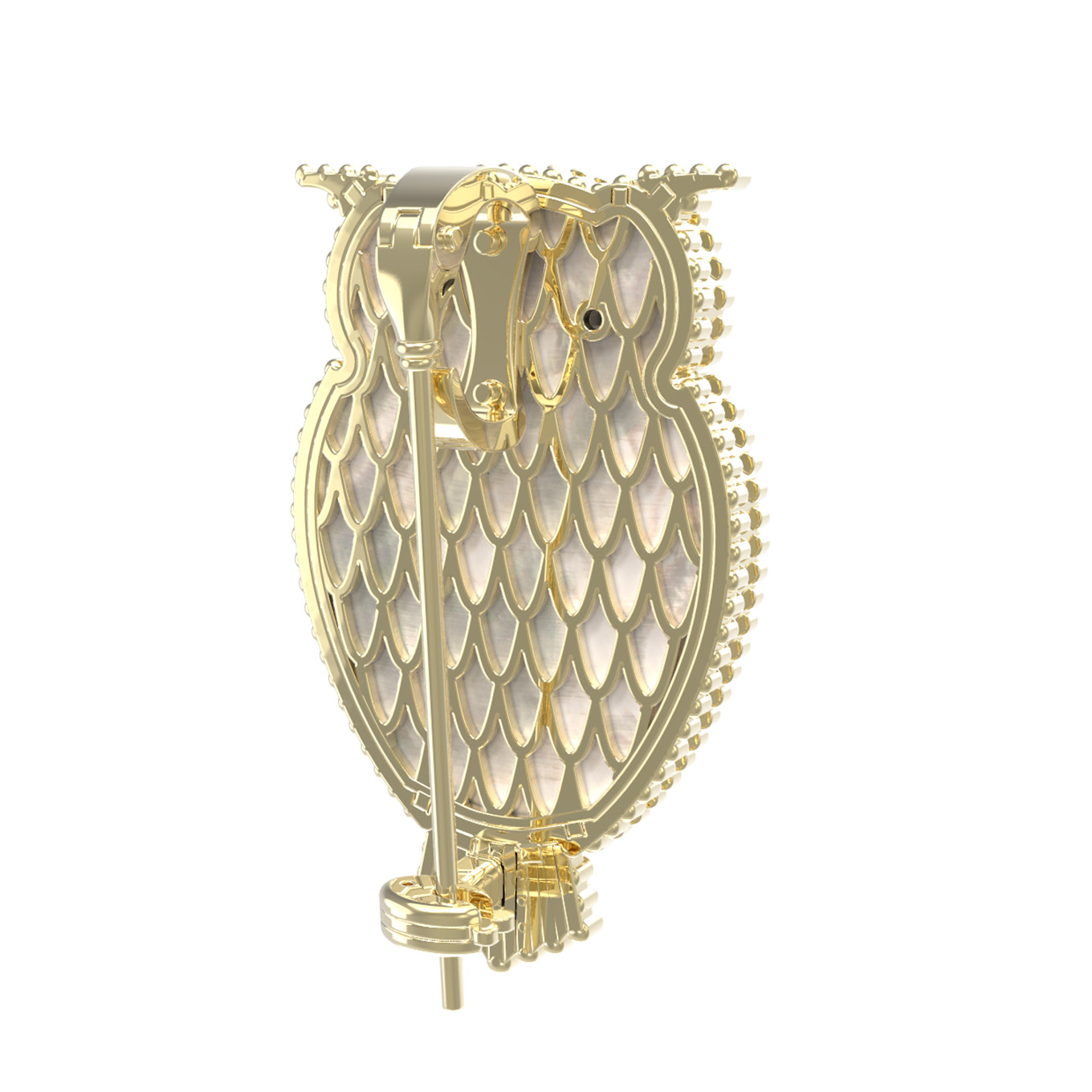 Брошь из лимонного золота c эмаль, ониксом и перламутром