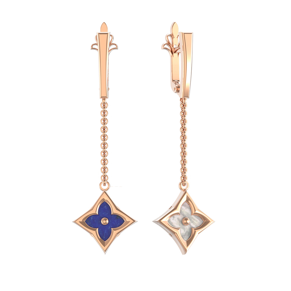 Серьги из золота c лазуритом и перламутром
