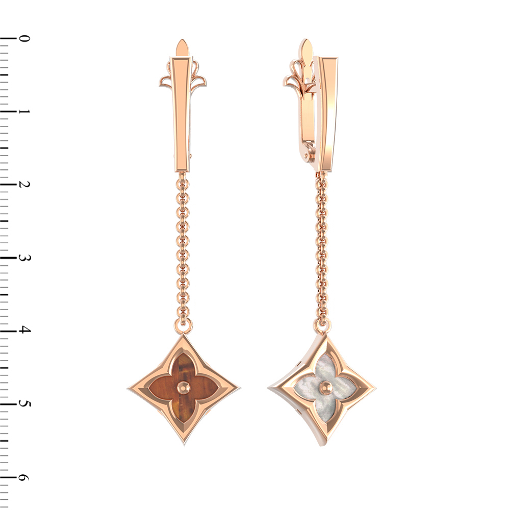 Серьги из золота c тигровым глазом и перламутром
