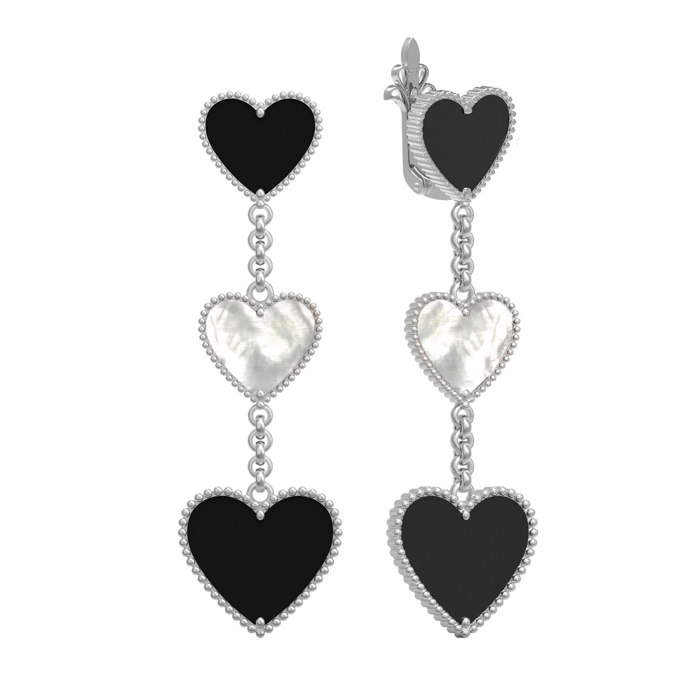 • Серьги из белого золота c ониксом и перламутром