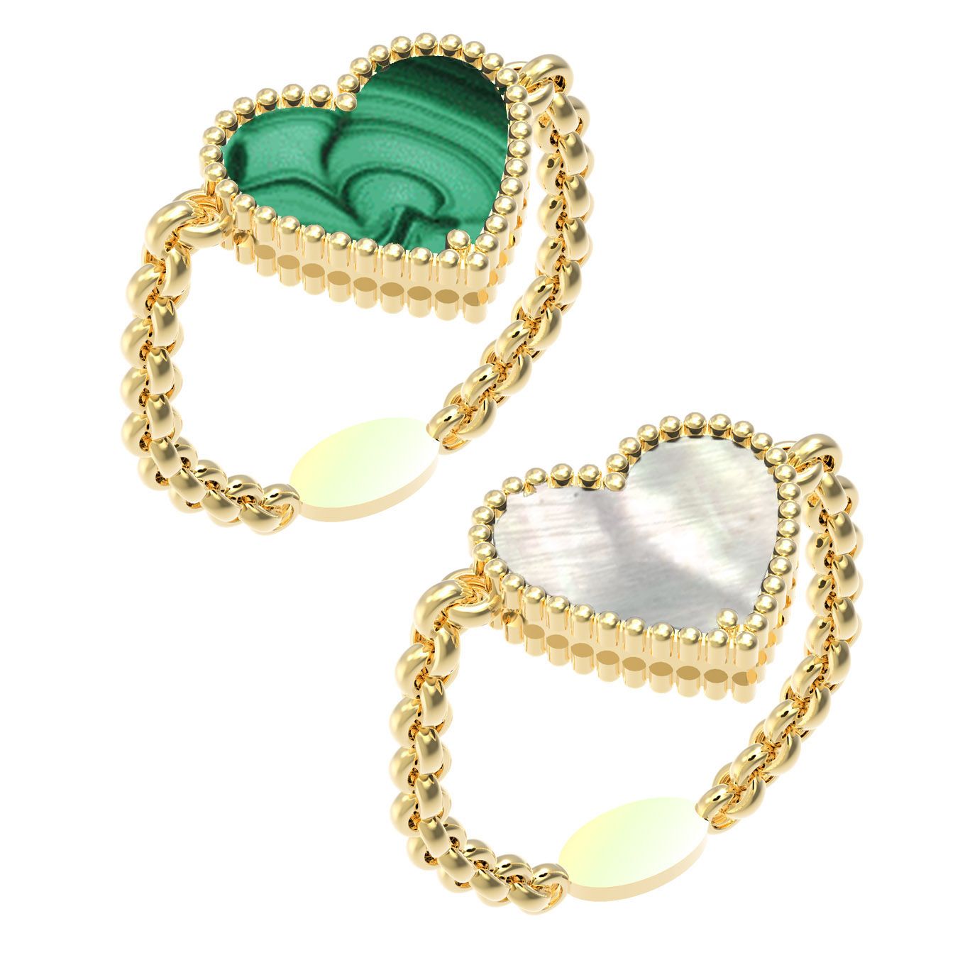 Кольцо из лимонного золота c малахитом и перламутром