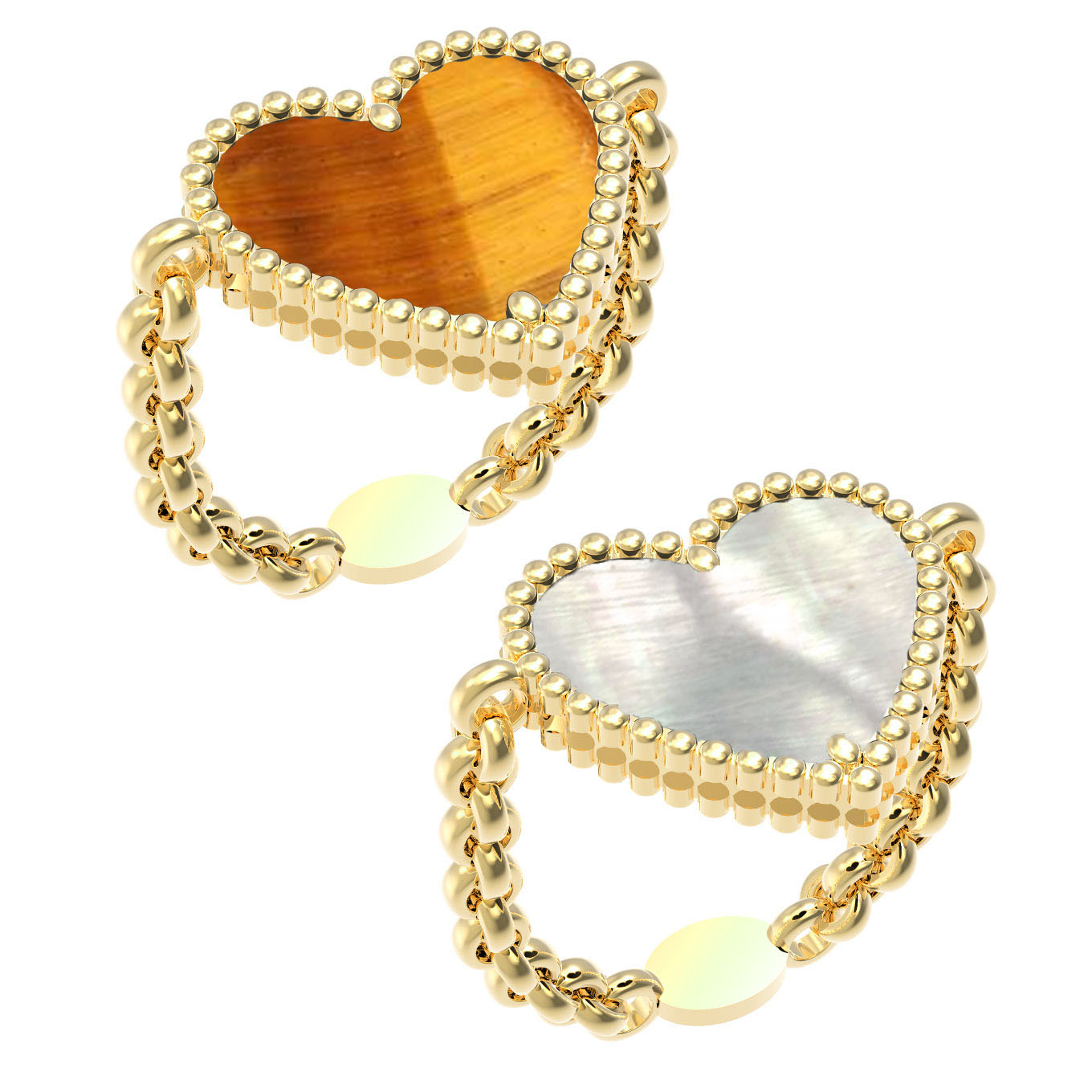 Кольцо из лимонного золота c тигровым глазом и перламутром