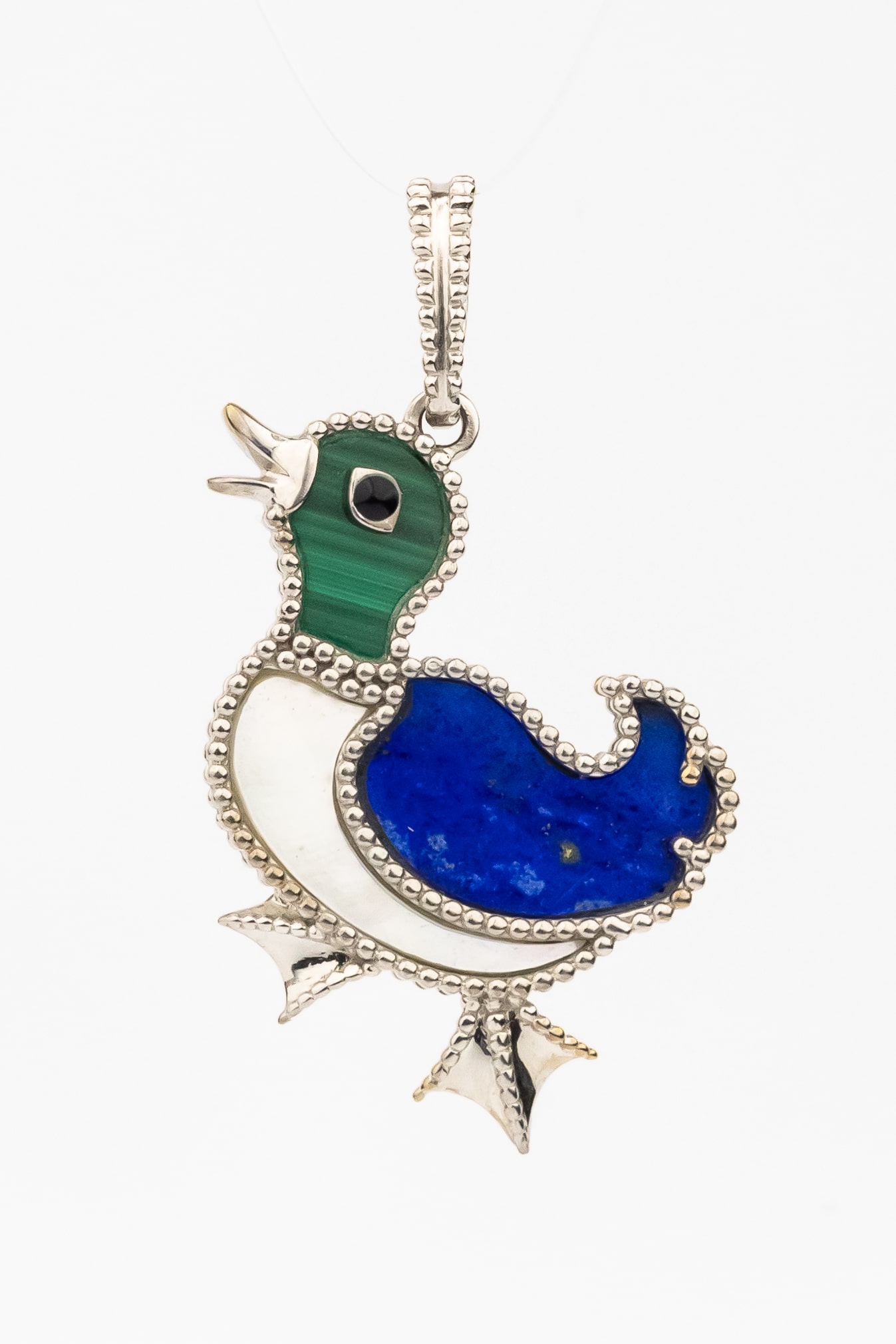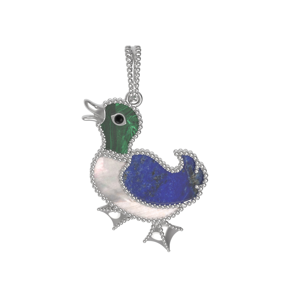 Подвеска из белого золота c эмаль, лазуритом, малахитом и перламутром