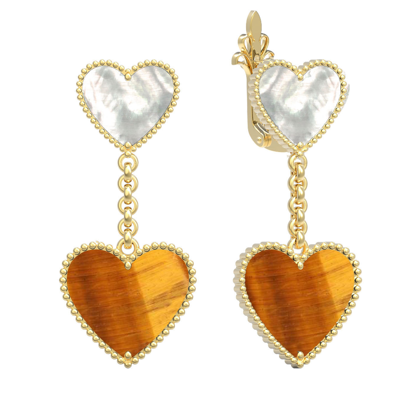 Серьги из лимонного золота c тигровым глазом и перламутром