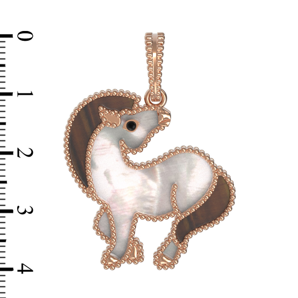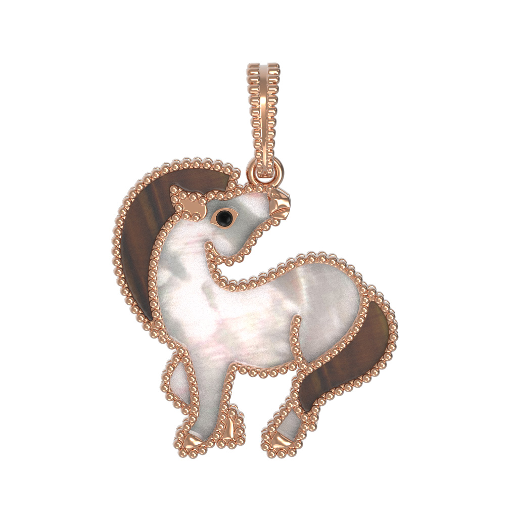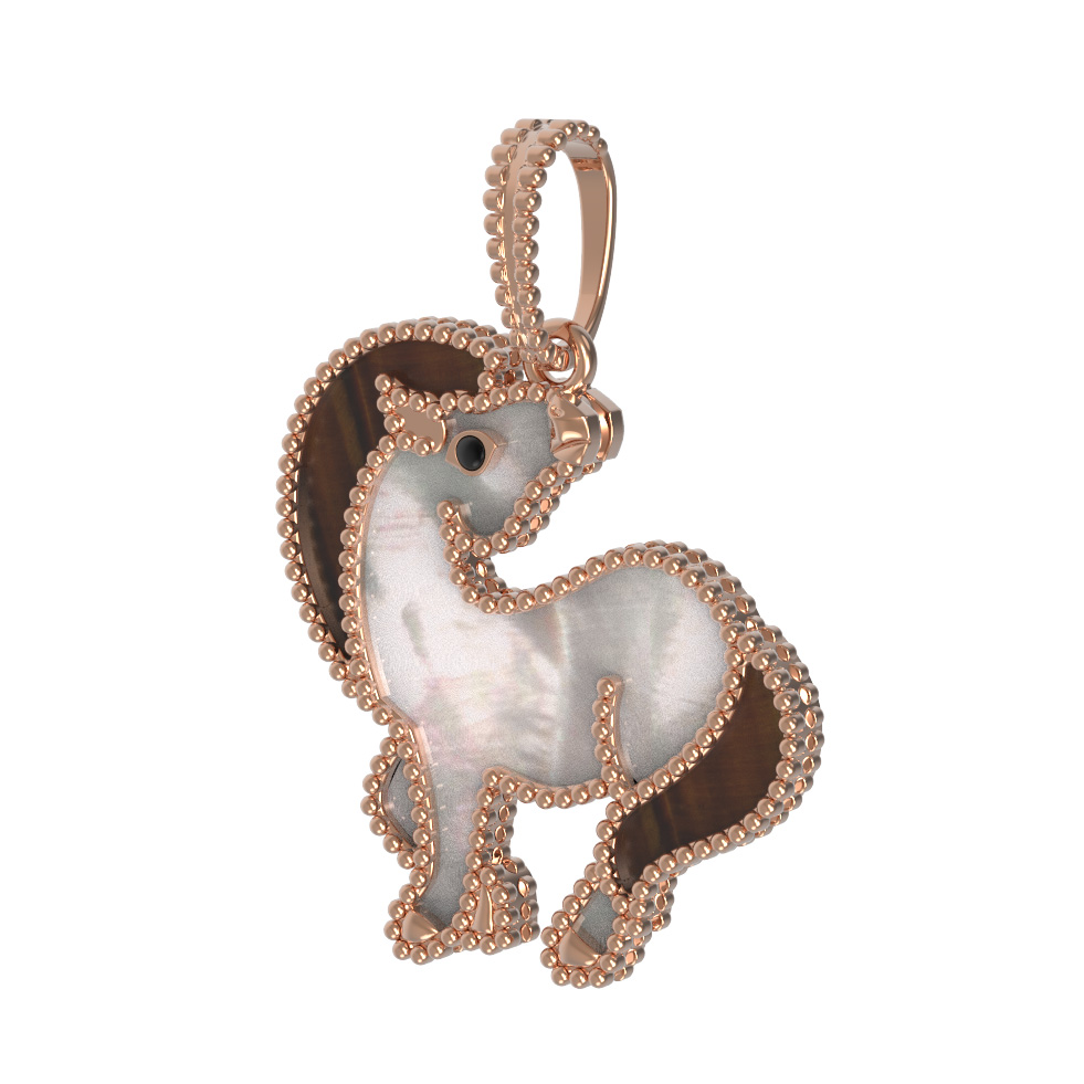 Подвеска из золота c эмаль, тигровым глазом и перламутром