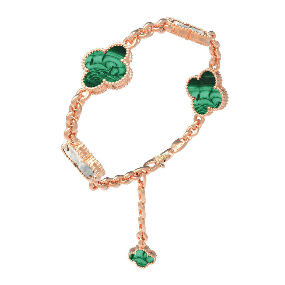 Браслет из золота c малахитом и перламутром
