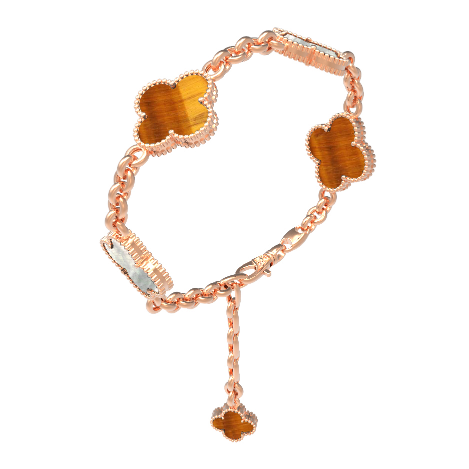 Браслет из золота c тигровым глазом и перламутром