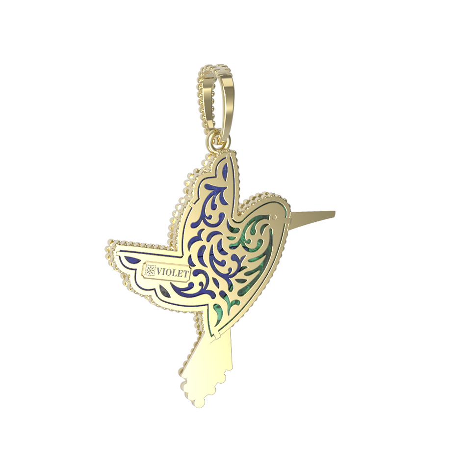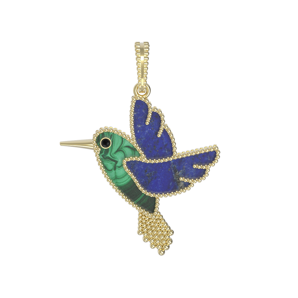 Подвеска из лимонного золота c эмалью, лазуритом и малахитом