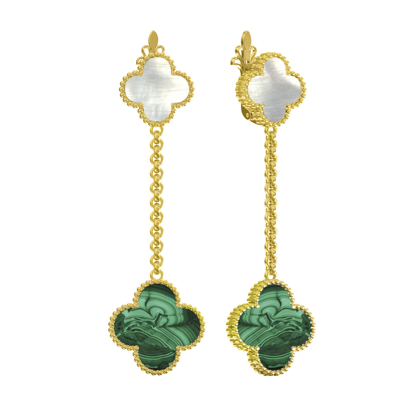 Серьги из лимонного золота c малахитом и перламутром