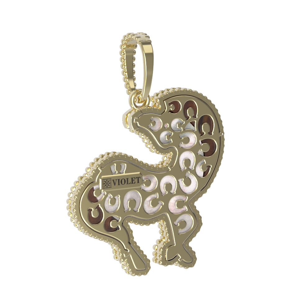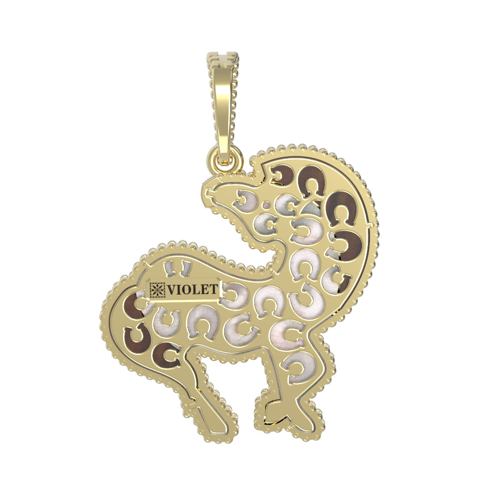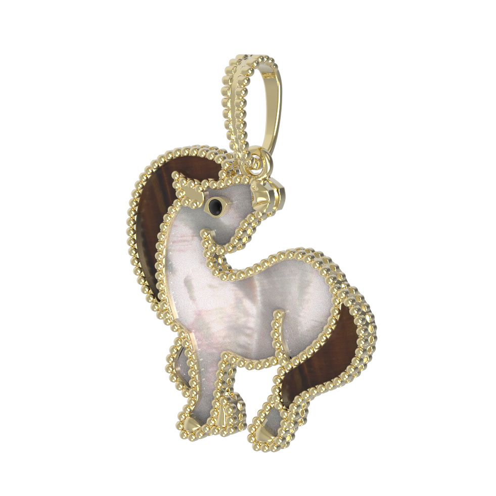 Подвеска из лимонного золота c эмалью, тигровым глазом и перламутром