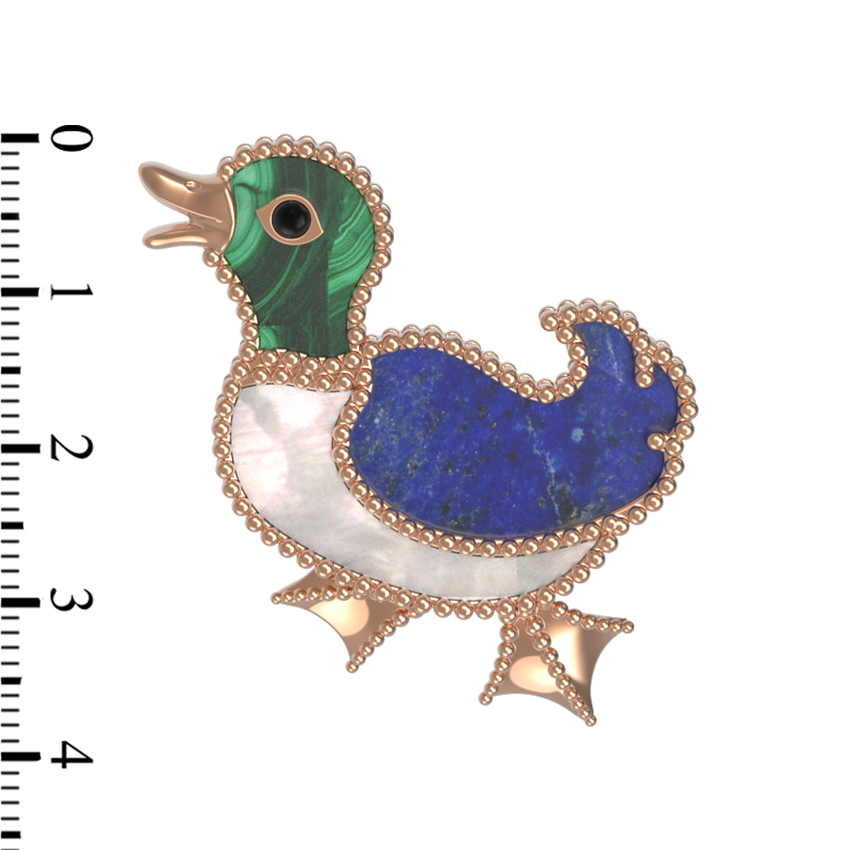 Брошь из золота c эмаль , лазуритом, малахитом и перламутром