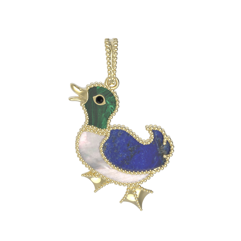Подвеска из лимонного золота c эмалью, лазуритом, малахитом и перламутром