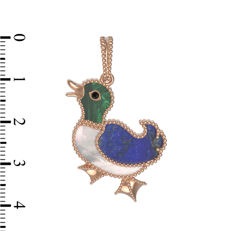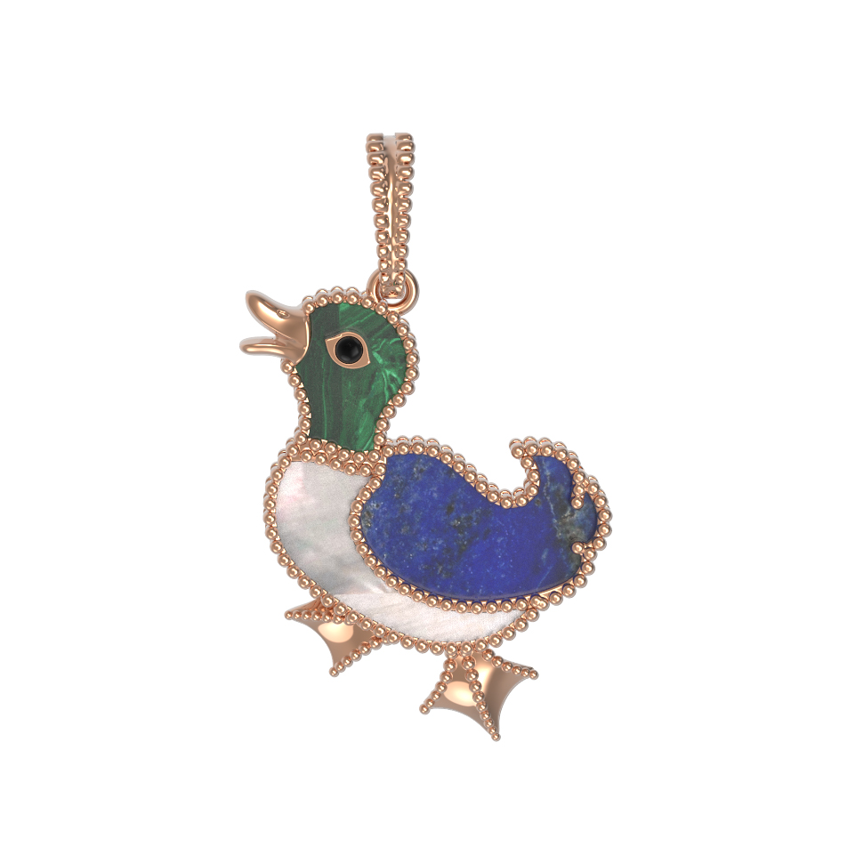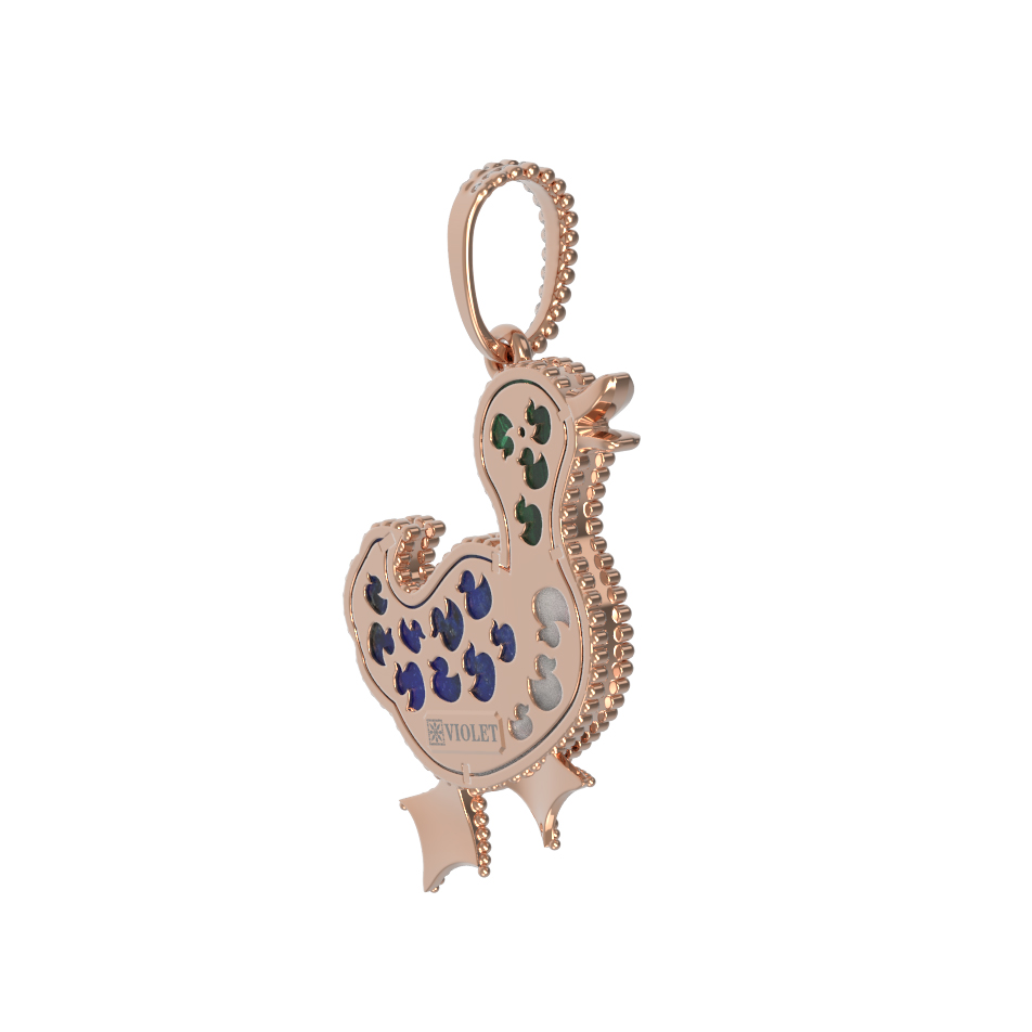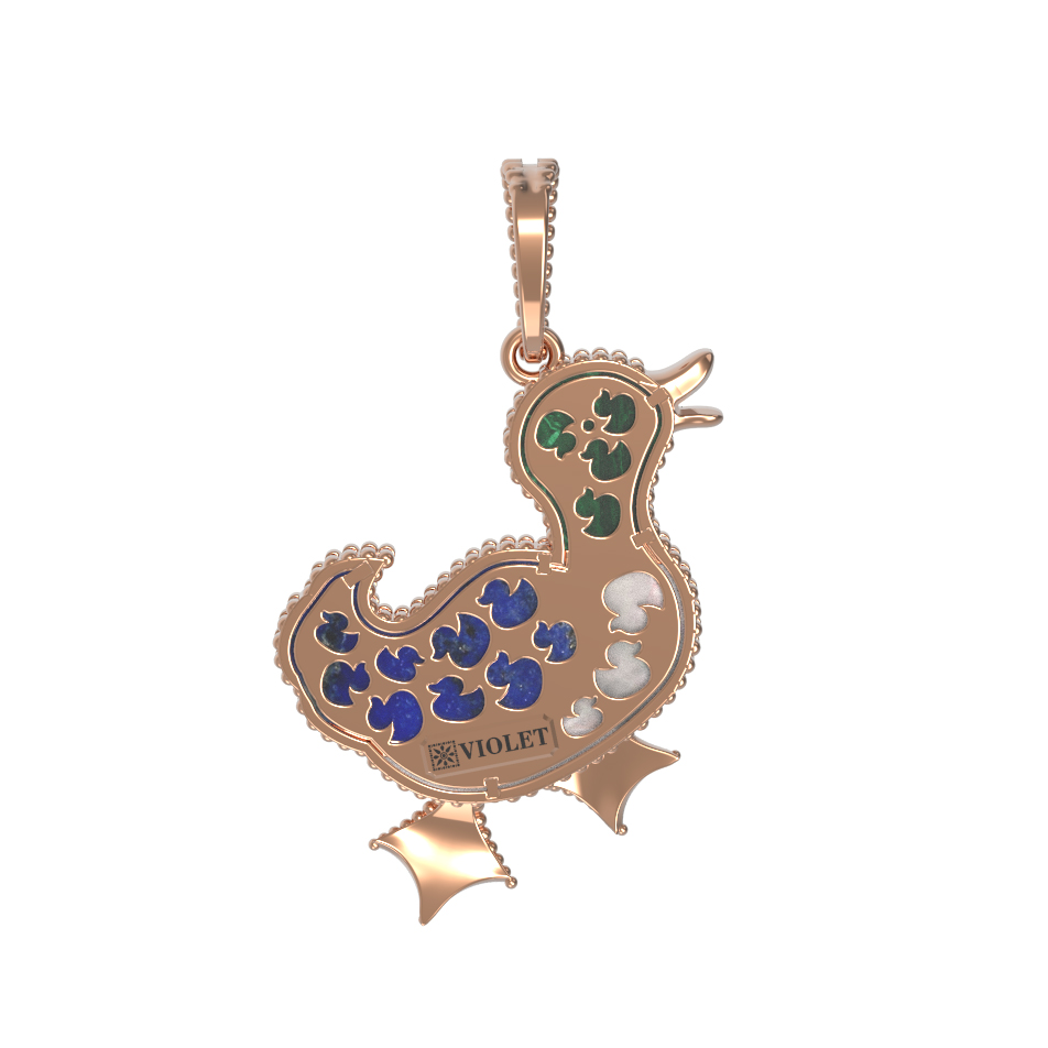 Подвеска из золота c эмалью, лазуритом, малахитом и перламутром