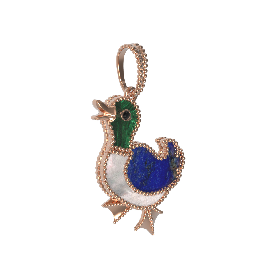 Подвеска из золота c эмалью, лазуритом, малахитом и перламутром