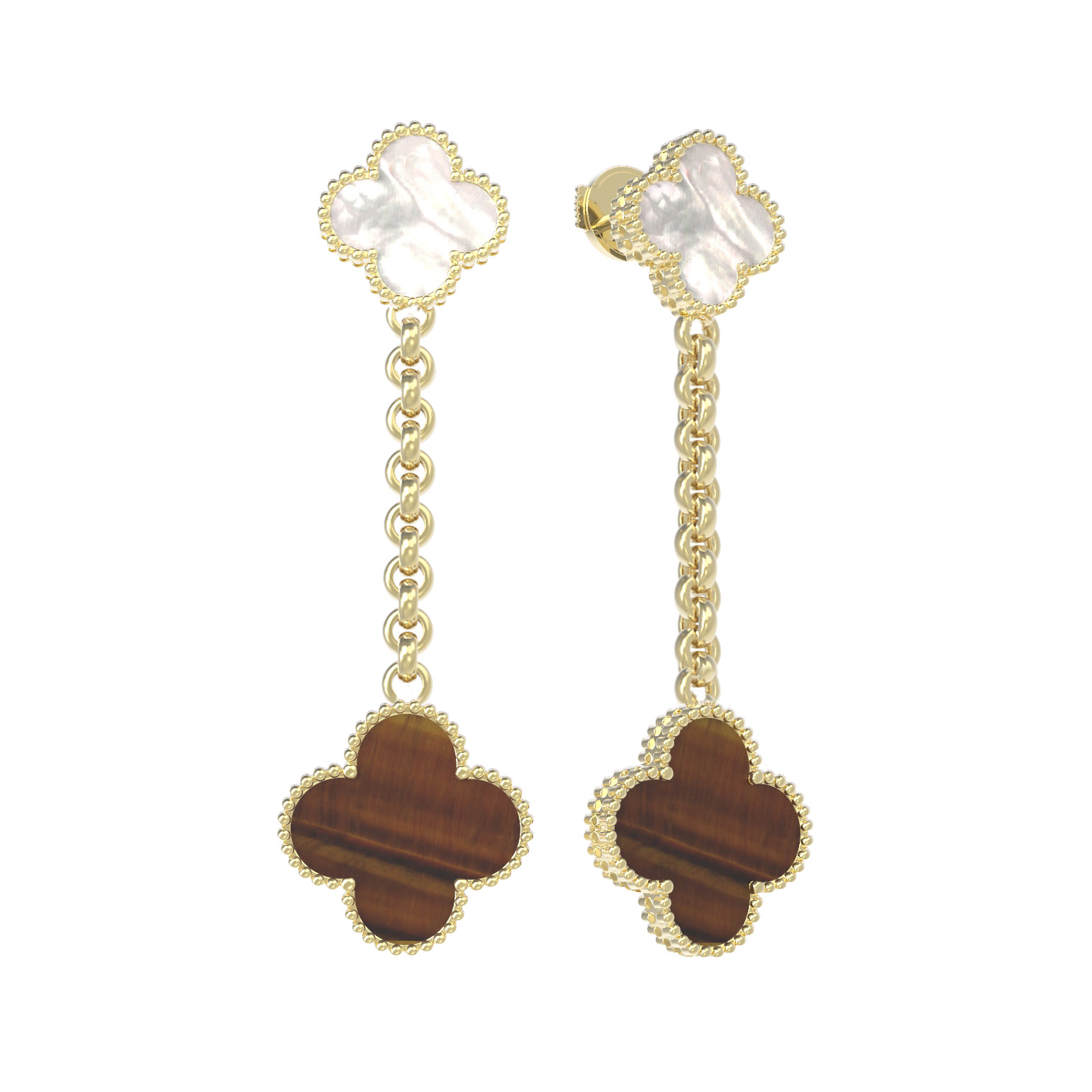 Серьги из лимонного золота c тигровым глазом и перламутром