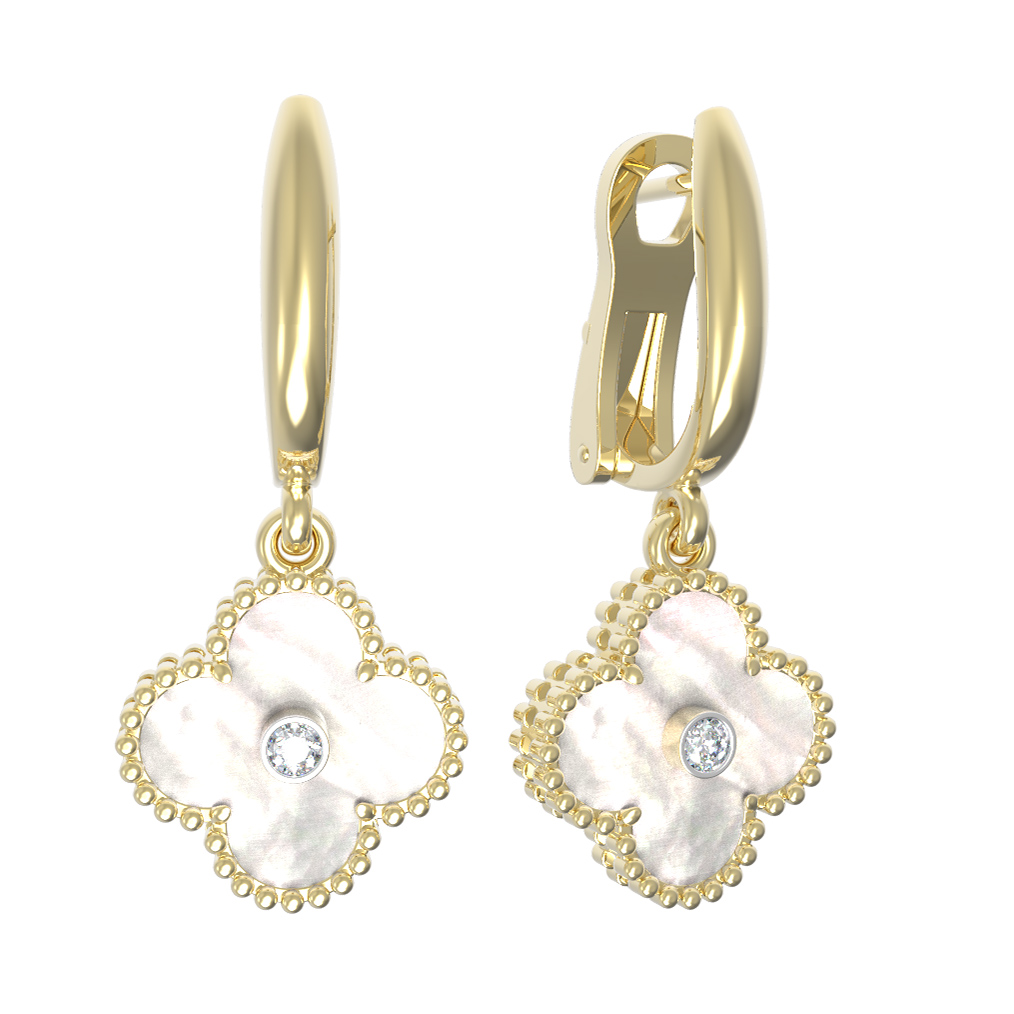 Серьги из лимонного золота c бриллиантами и перламутром