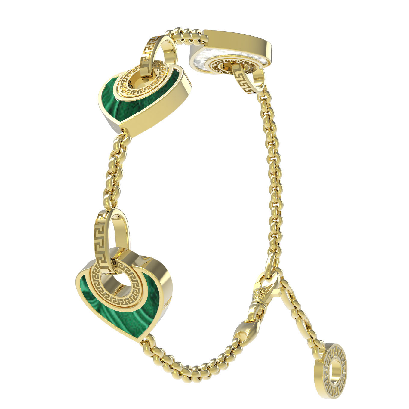 Браслет из лимонного золота c фианитом, малахитом и перламутром