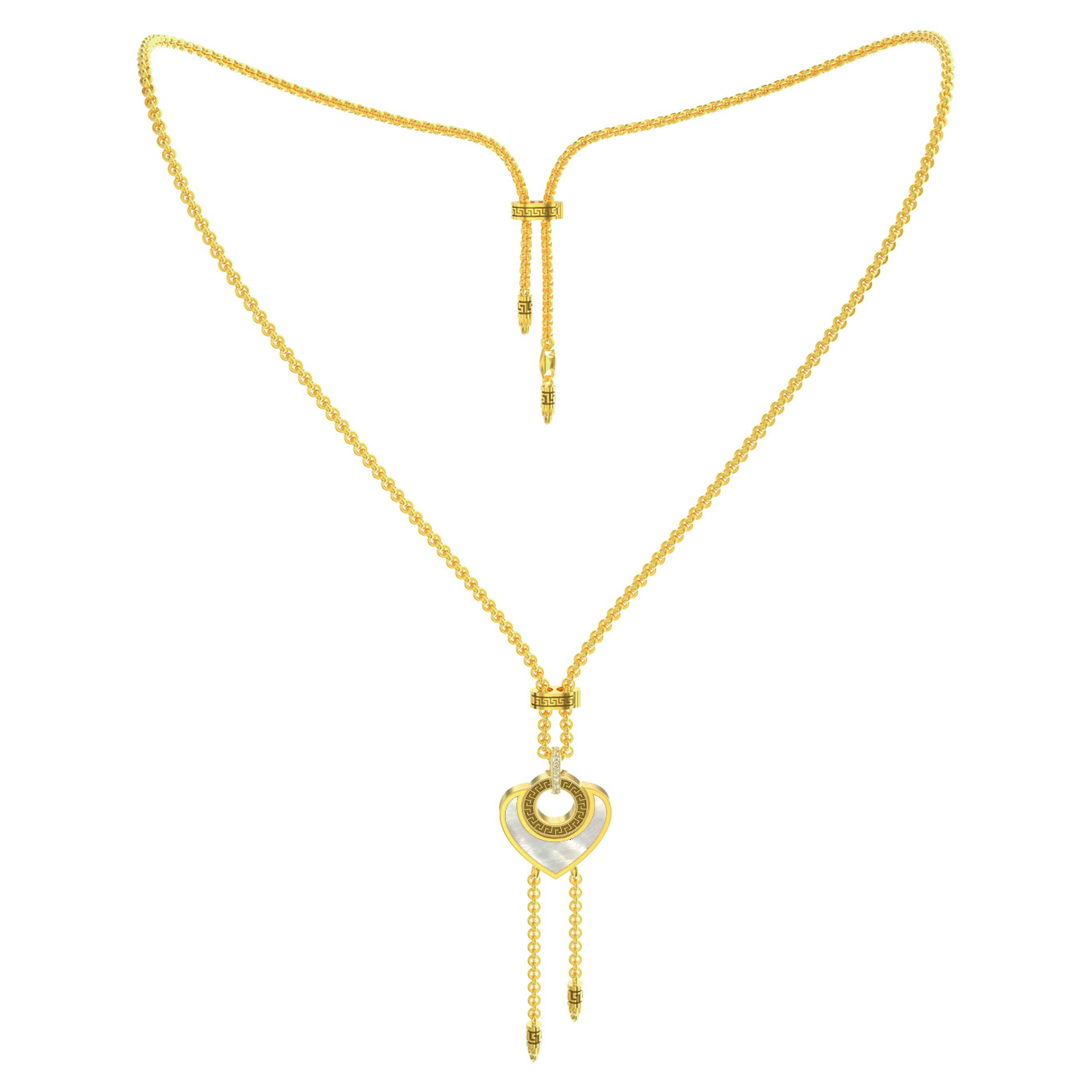 Колье из лимонного золота c фианитом, лазуритом и перламутром