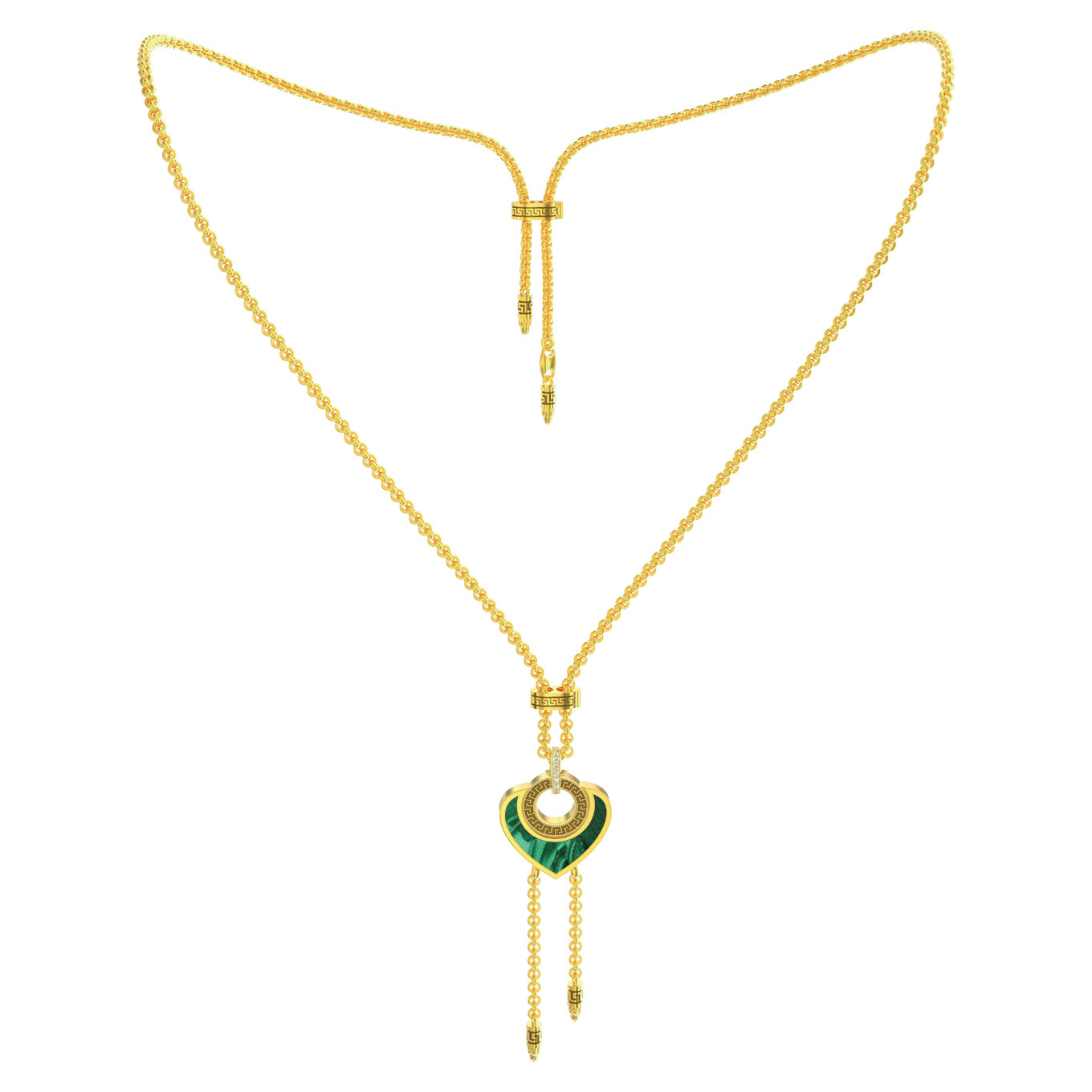 • Колье из лимонного золота c фианитом, малахитом и перламутром
