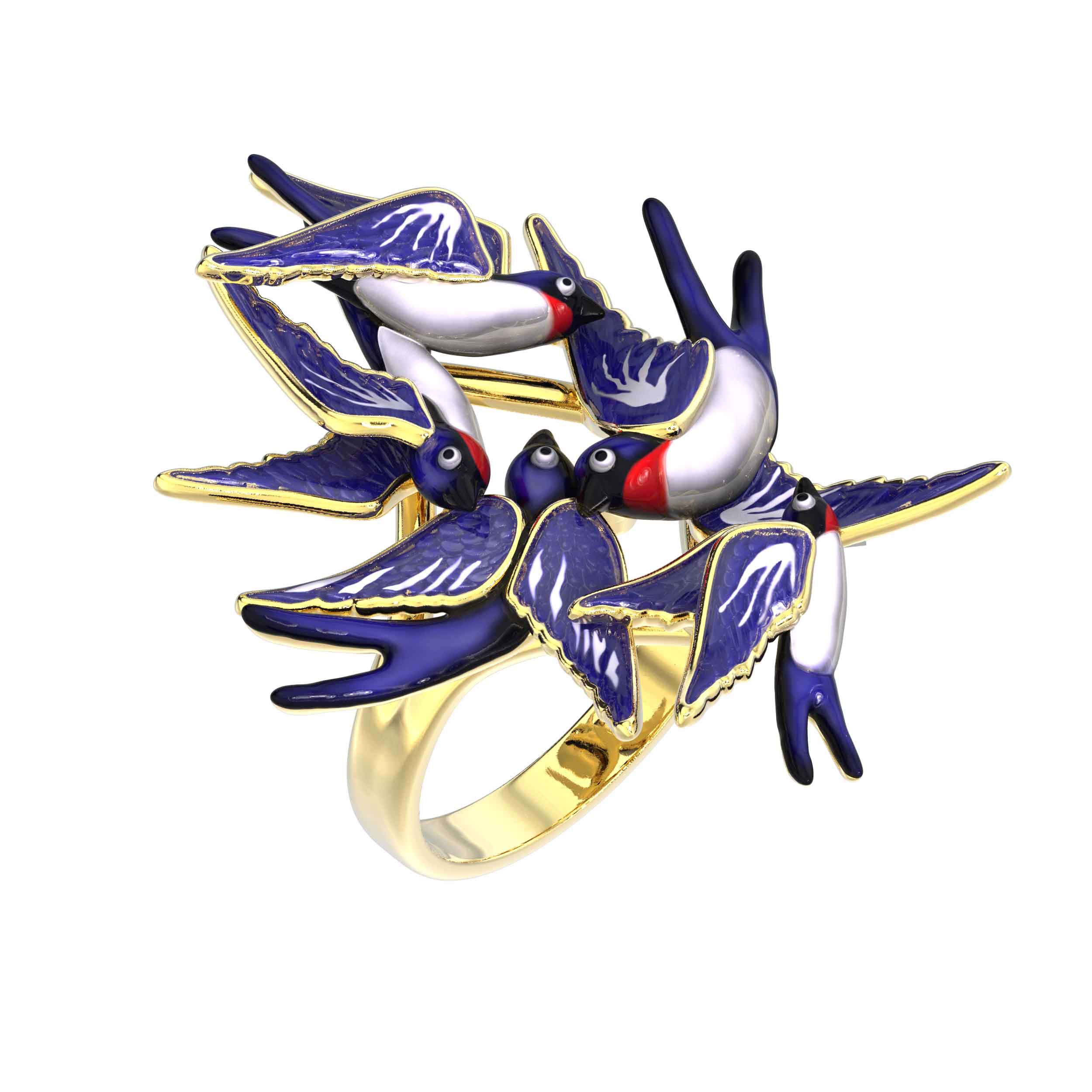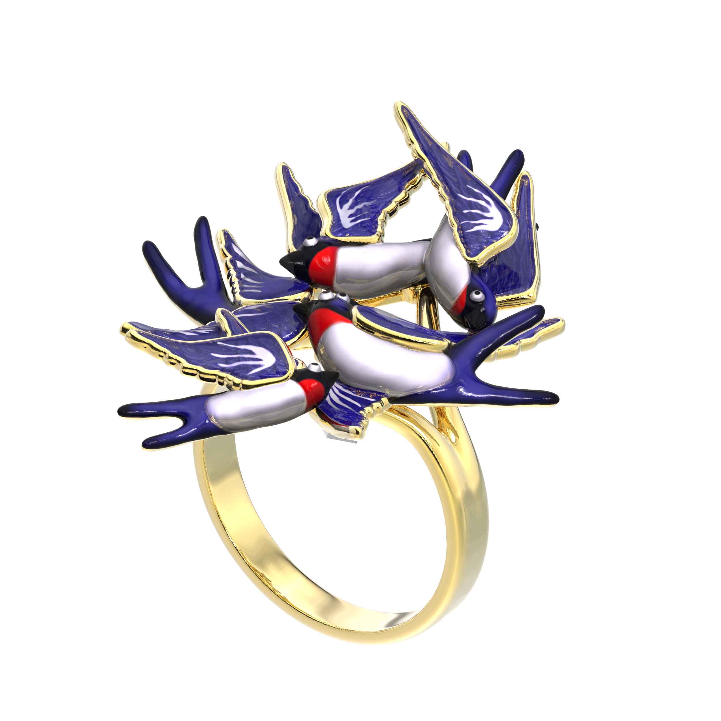 Кольцо из лимонного золота c эмаль