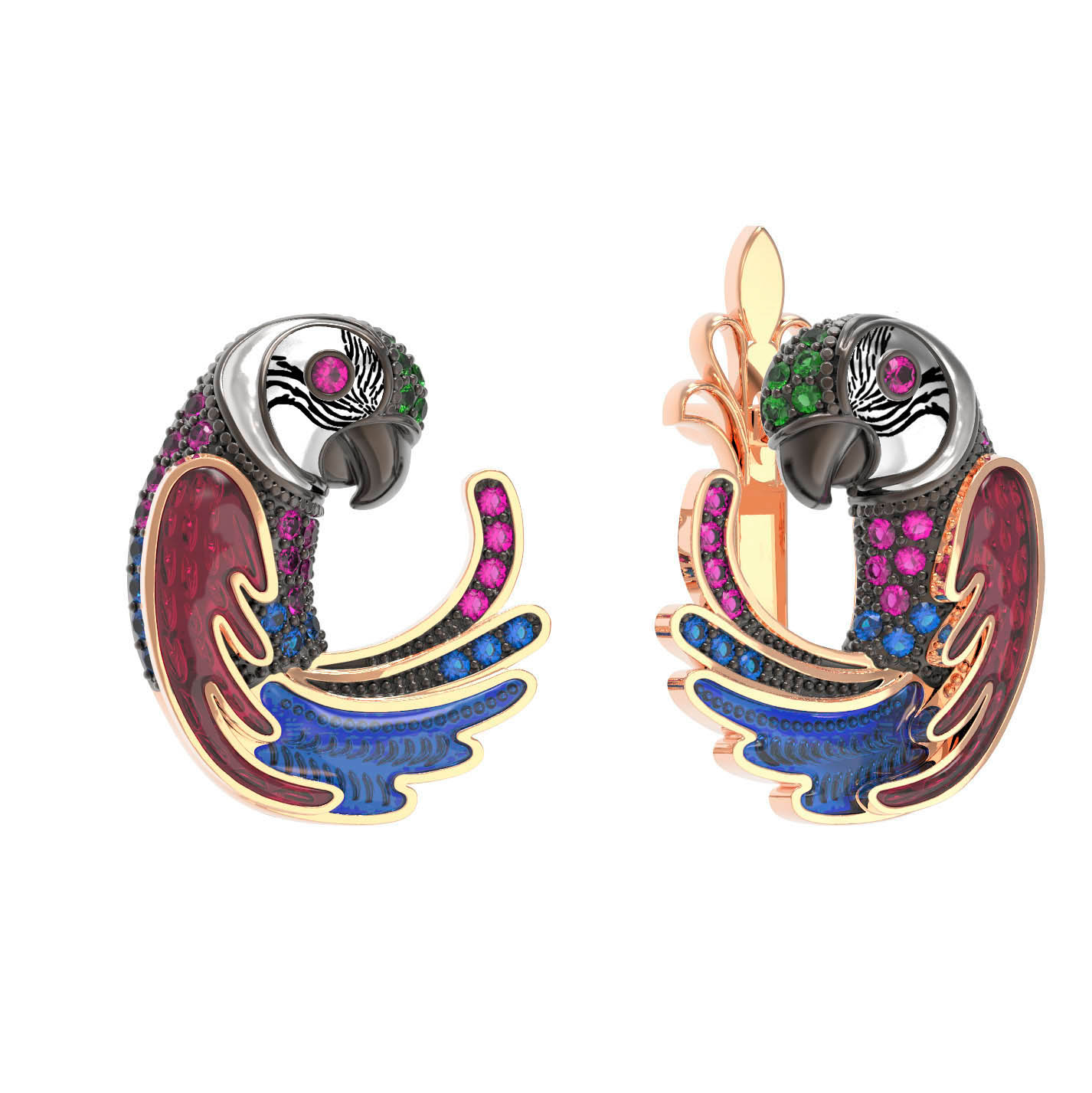 Серьги из золота c эмалью и фианитом