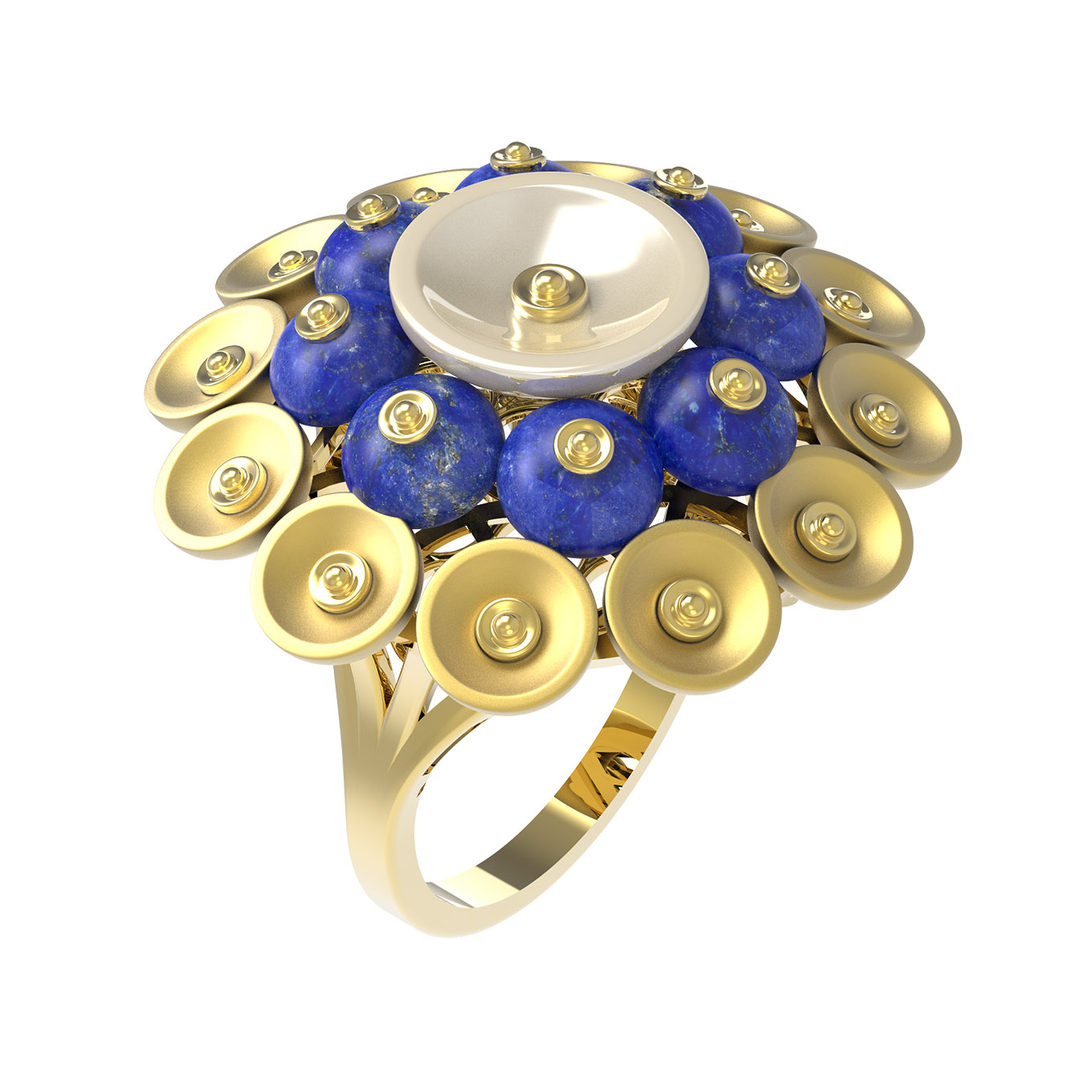 Кольцо из лимонного золота c лазуритом и перламутром