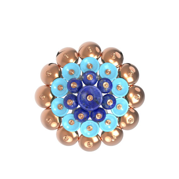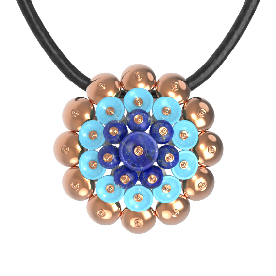 Подвеска из золота c бирюзой и лазуритом