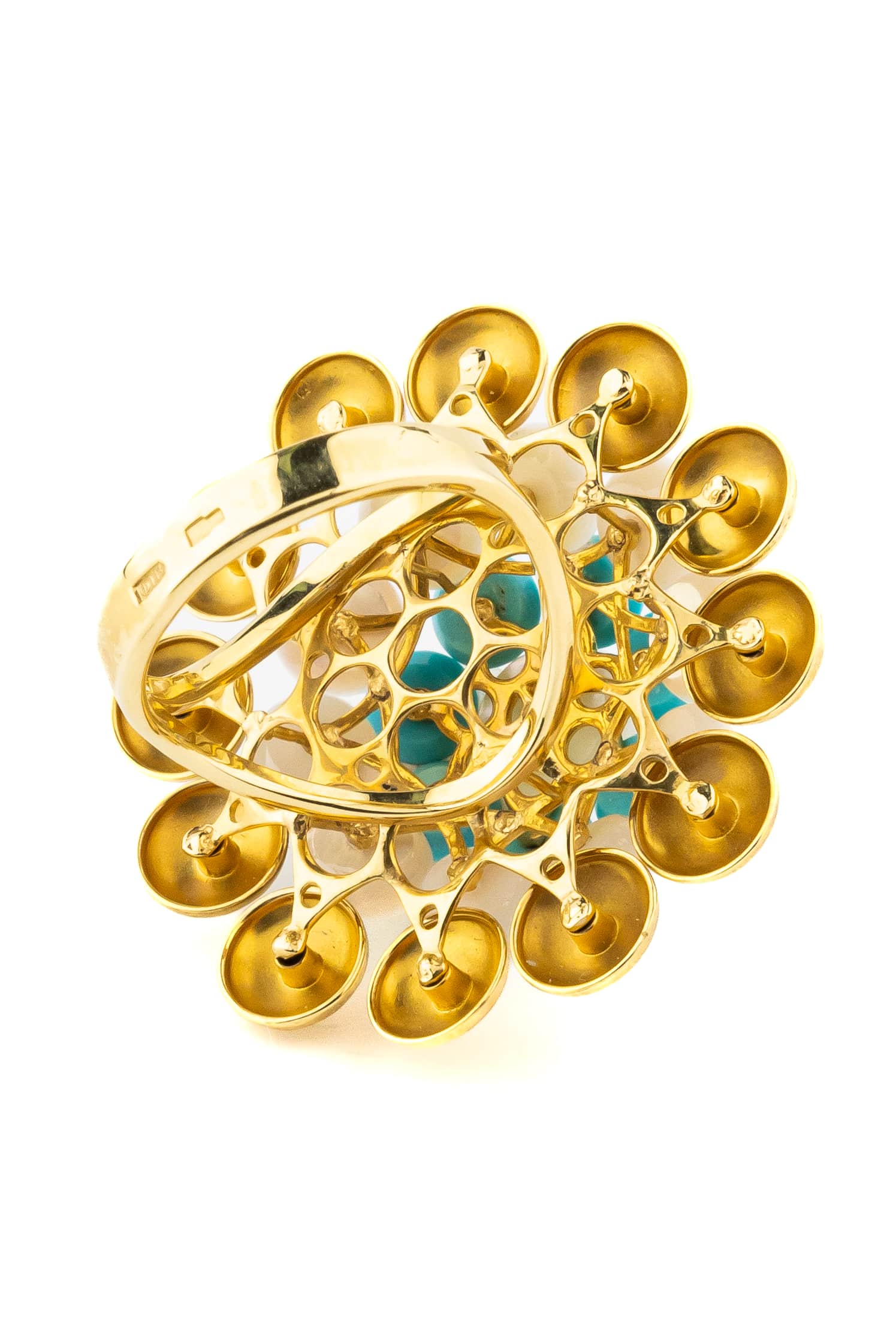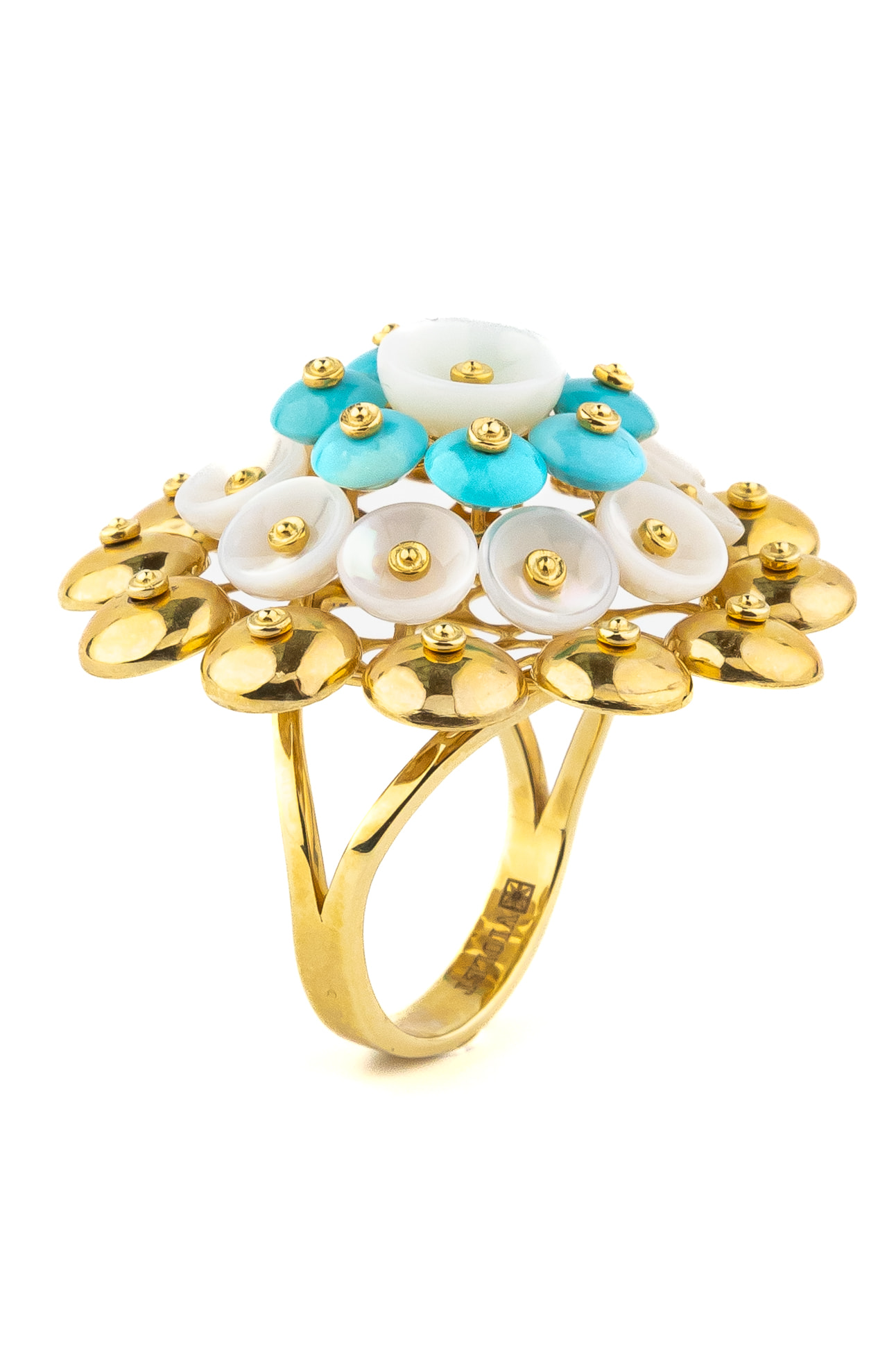 Кольцо из лимонного золота c бирюзой и перламутром