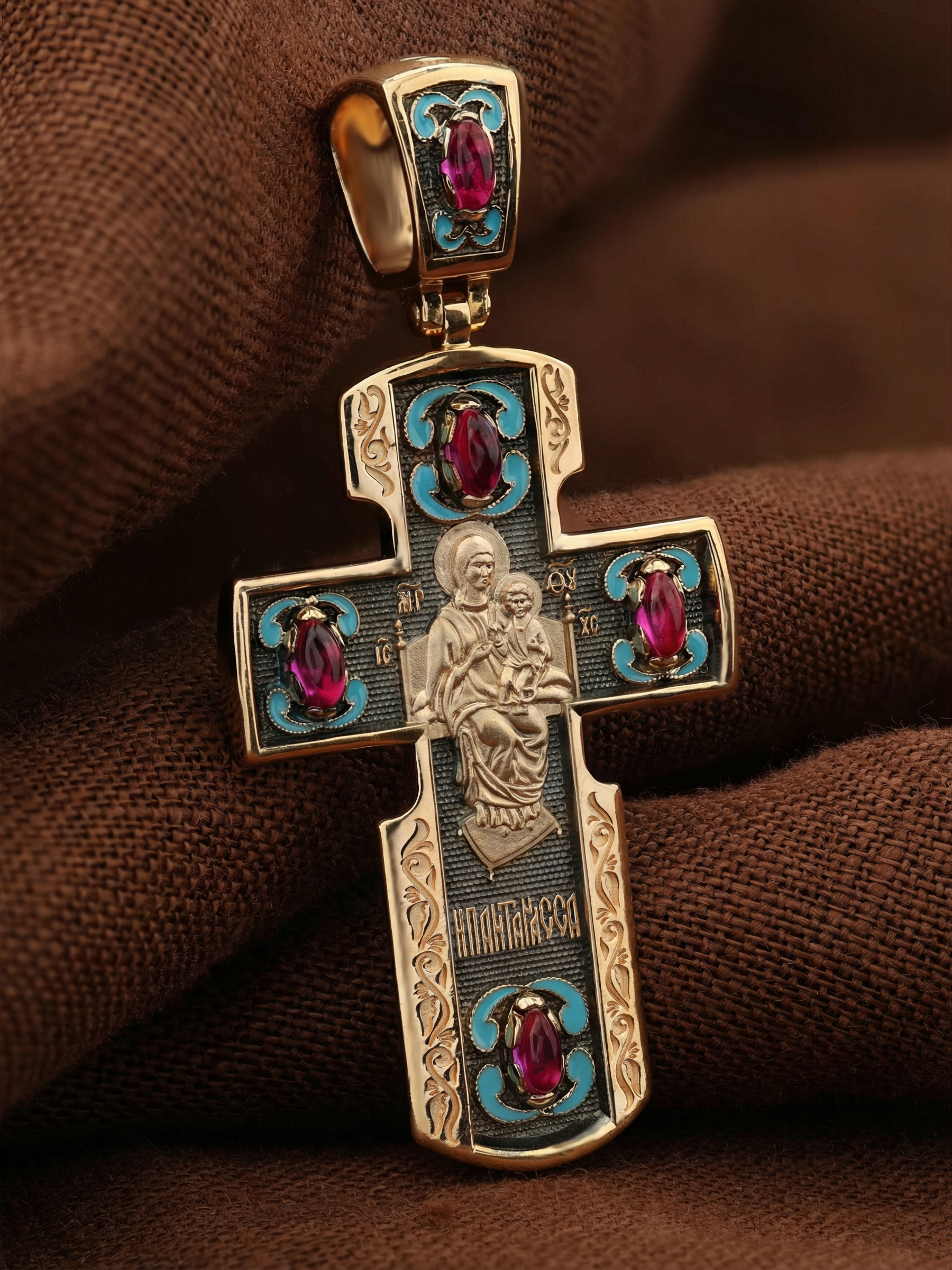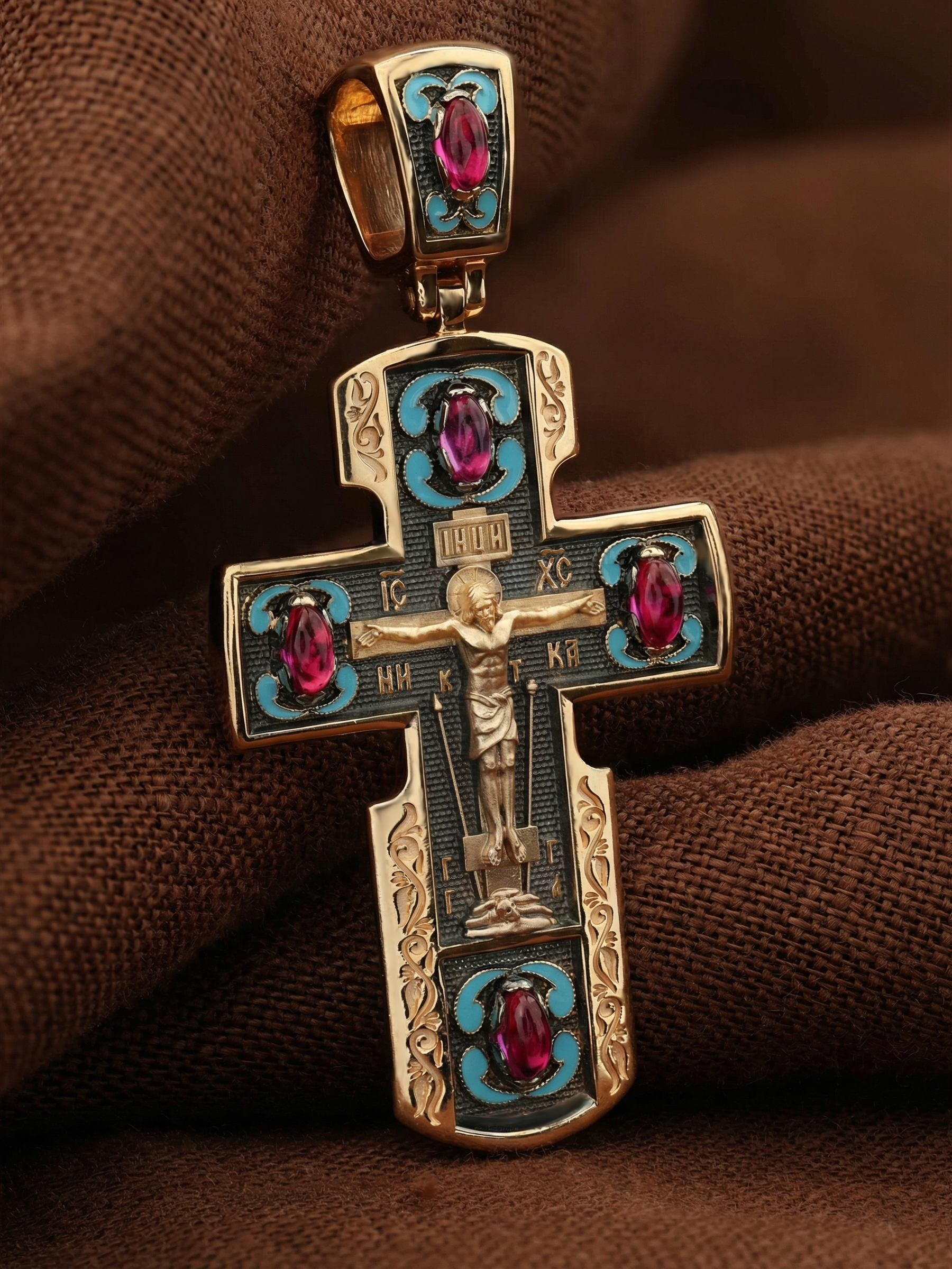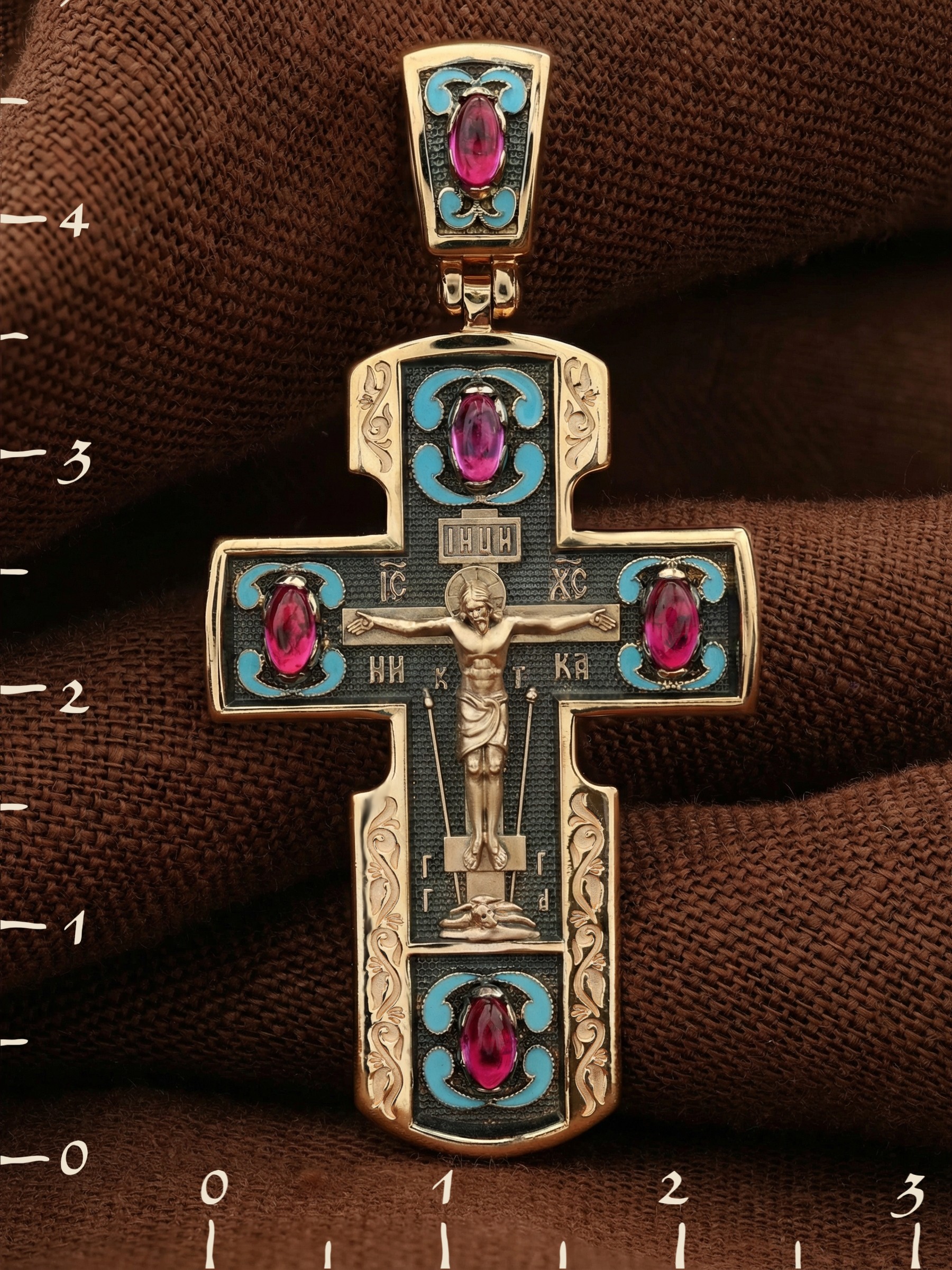 Крест из золота c эмалью и рубином