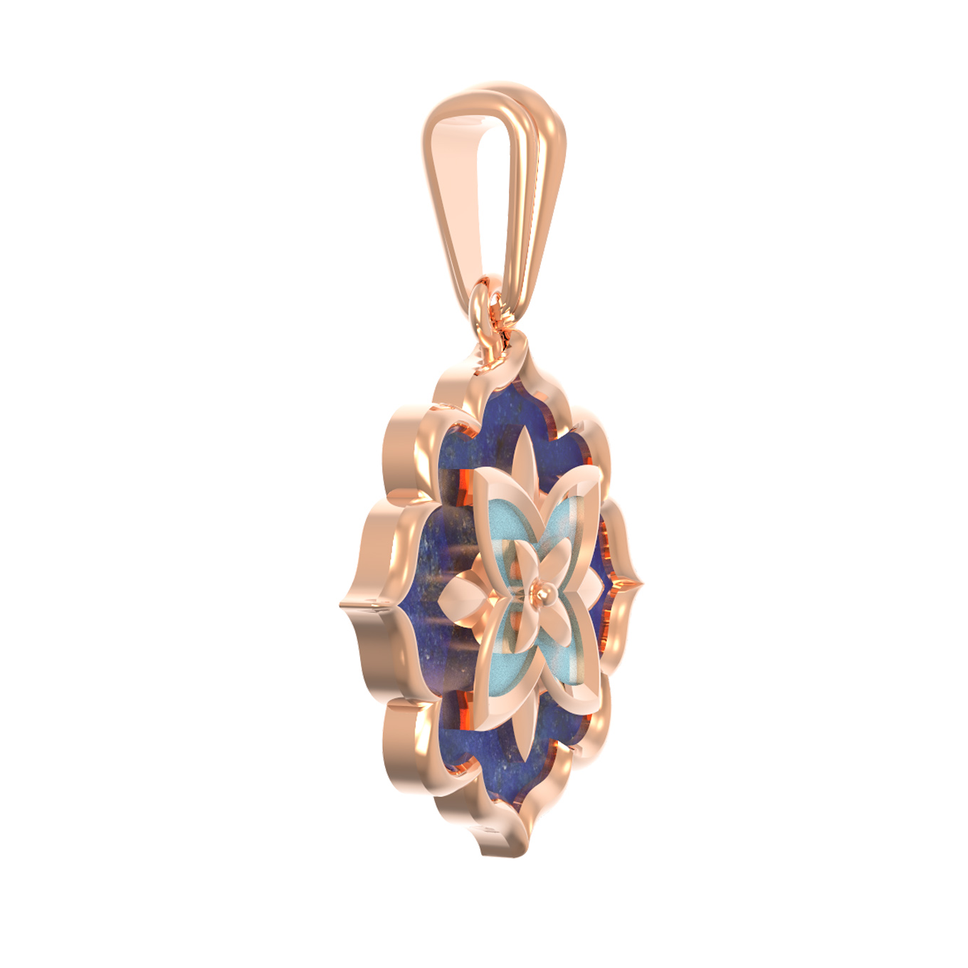 Подвеска из золота c бирюзой и лазуритом