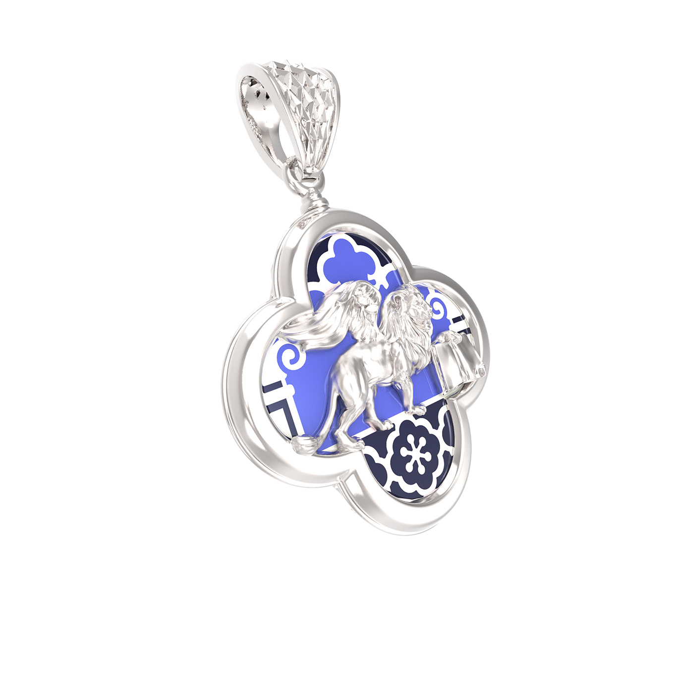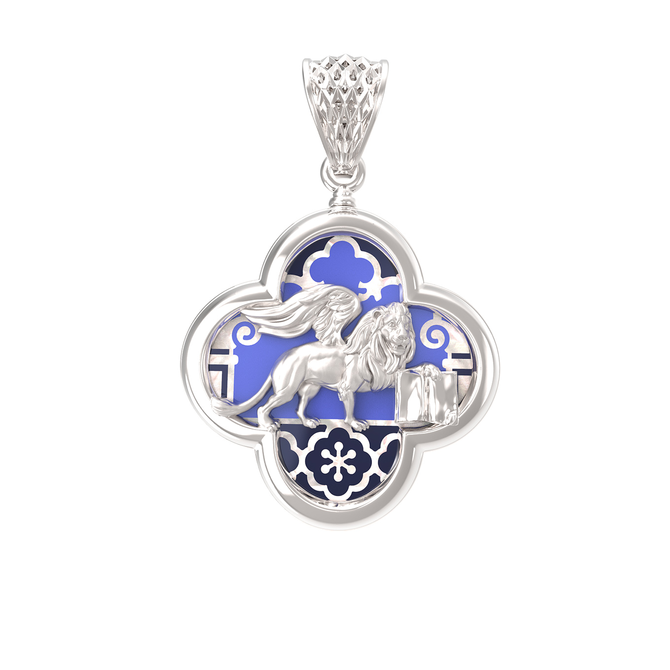 Подвеска из белого золота c эмаль и перламутром