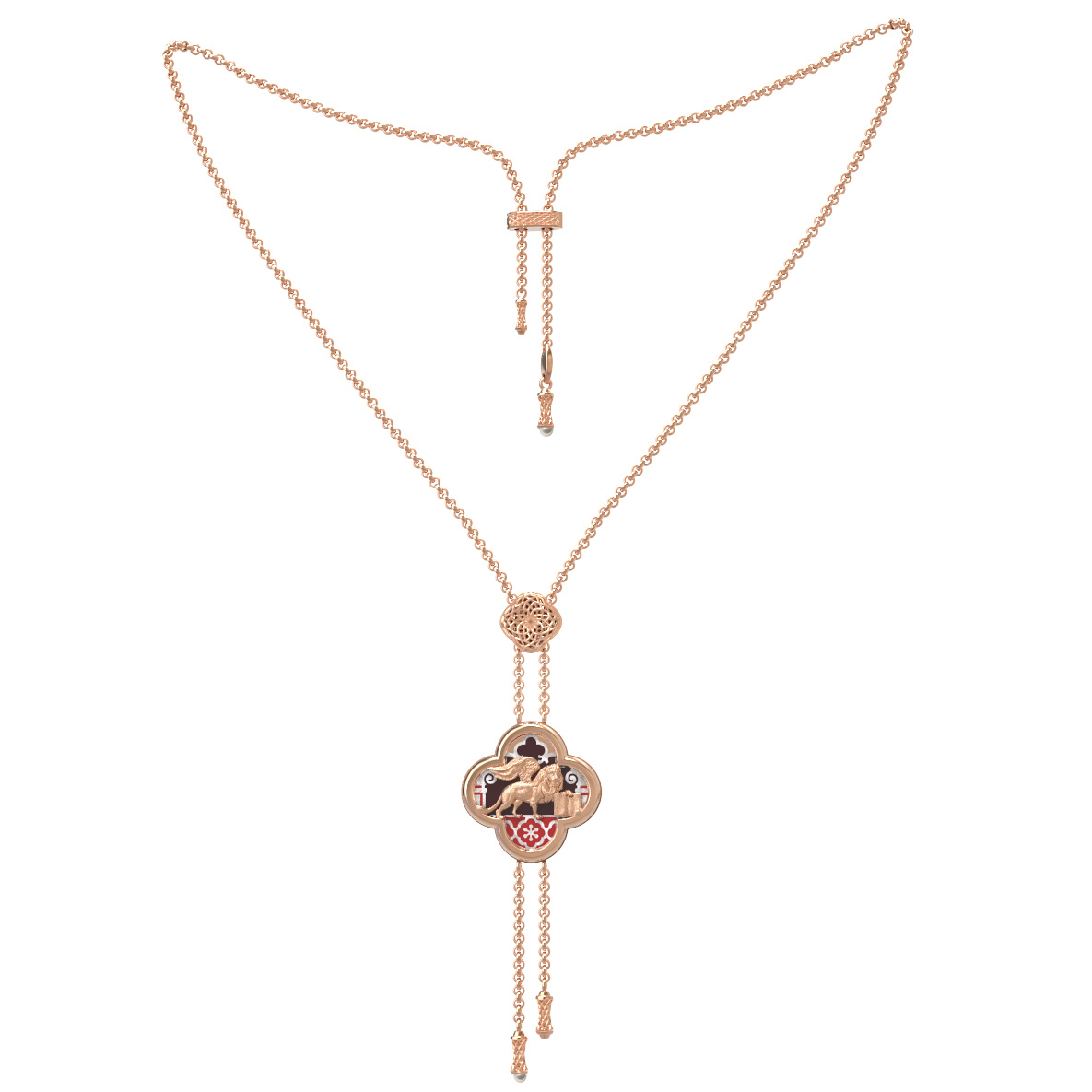 Колье из золота c эмаль, жемчугом и перламутром