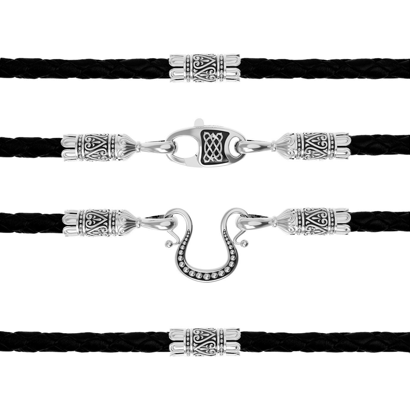 Шнурок кожаный из белого золота c кожаным шнурком