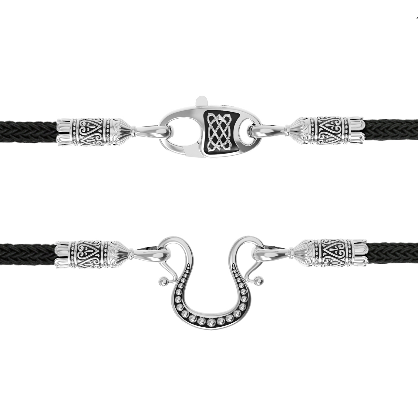 Шнурок шёлковый из белого золота c шёлковым шнурком