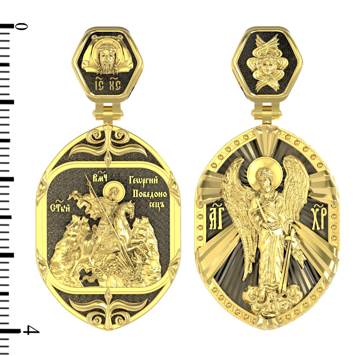 Основой композиции лицевой стороны является изображение Святого Георгия Победоносца.
