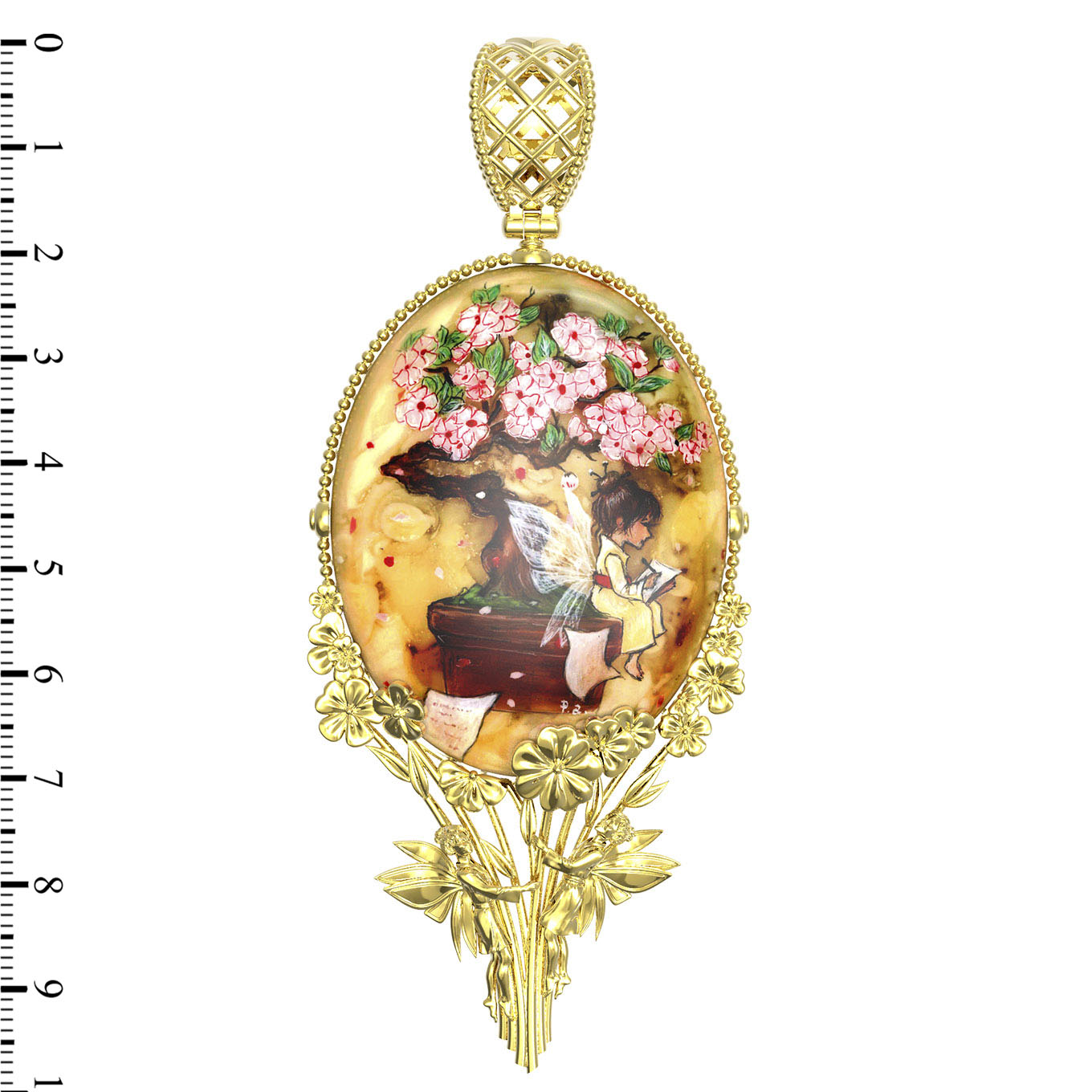 Подвеска из лимонного золота c росписным янтарём