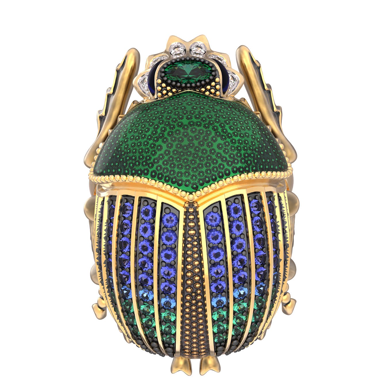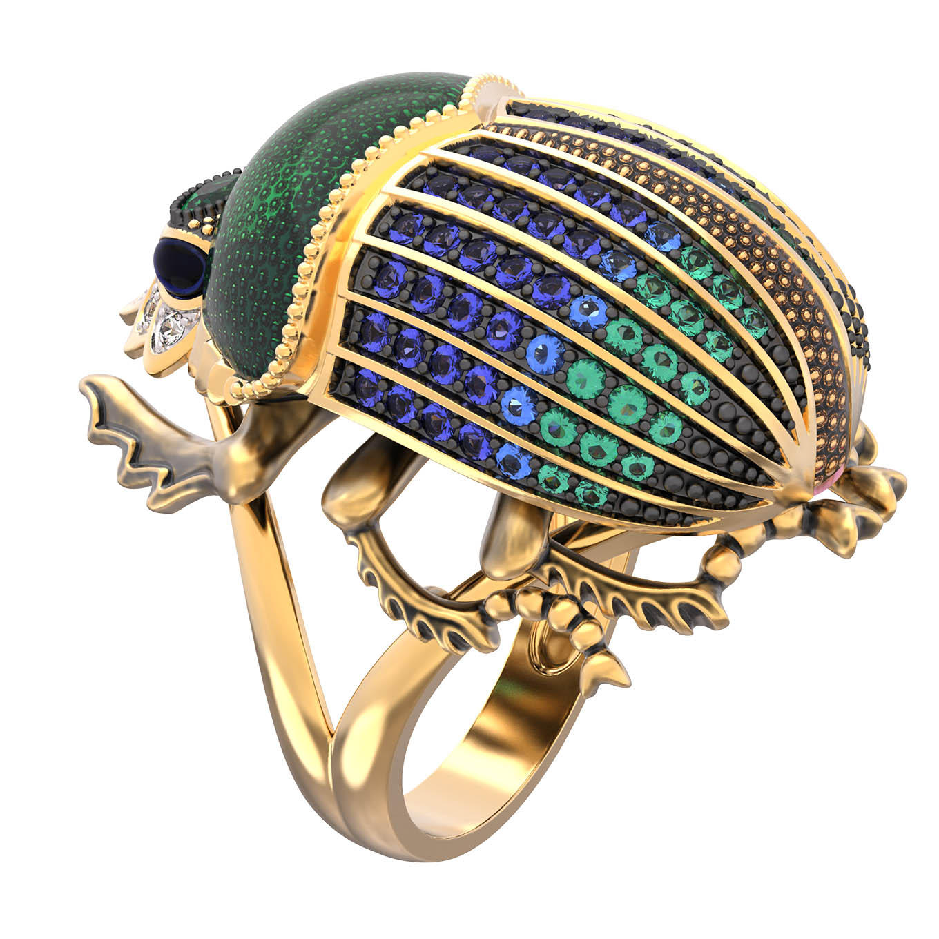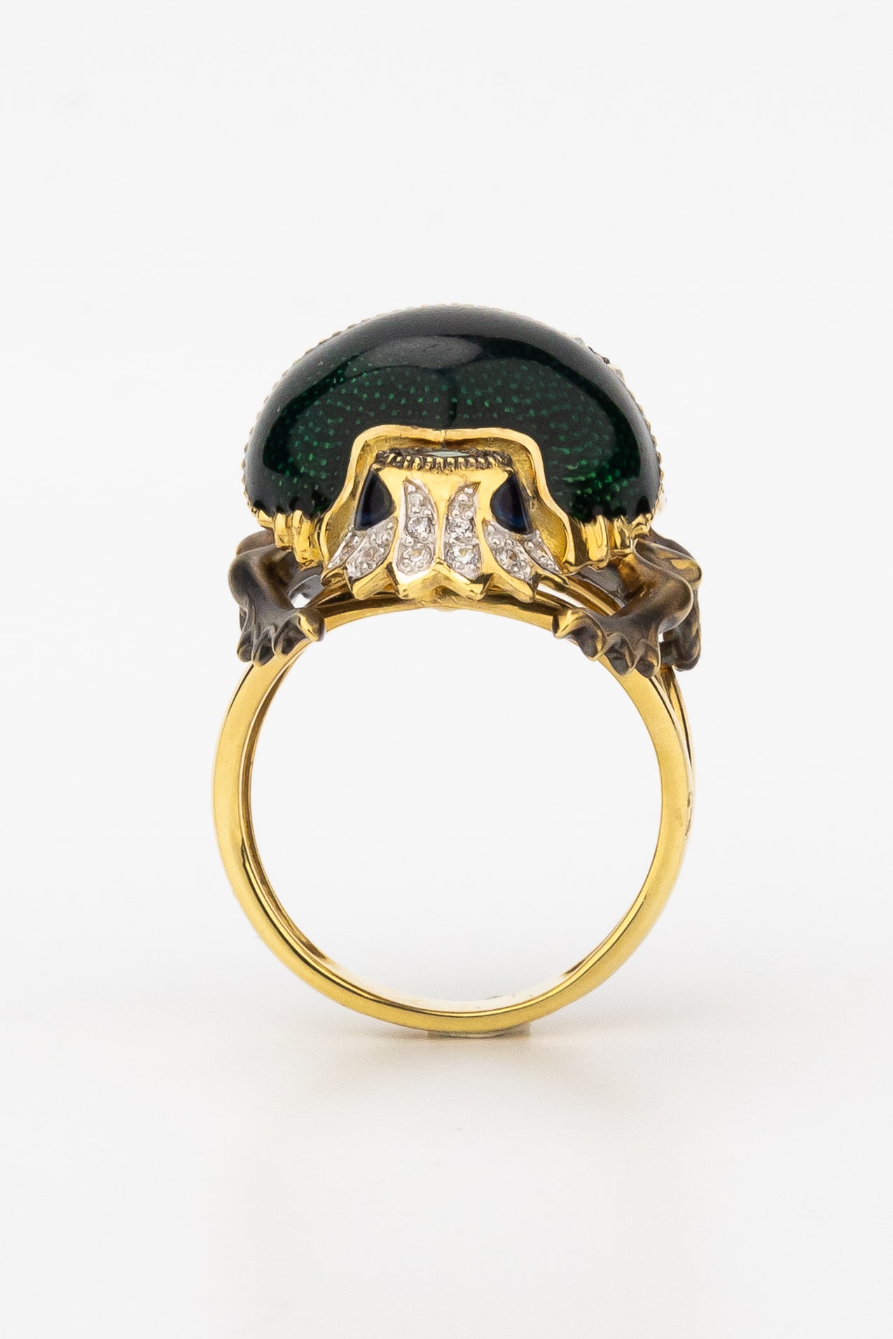 Кольцо из лимонного золота c эмаль, фианитом и турмалином