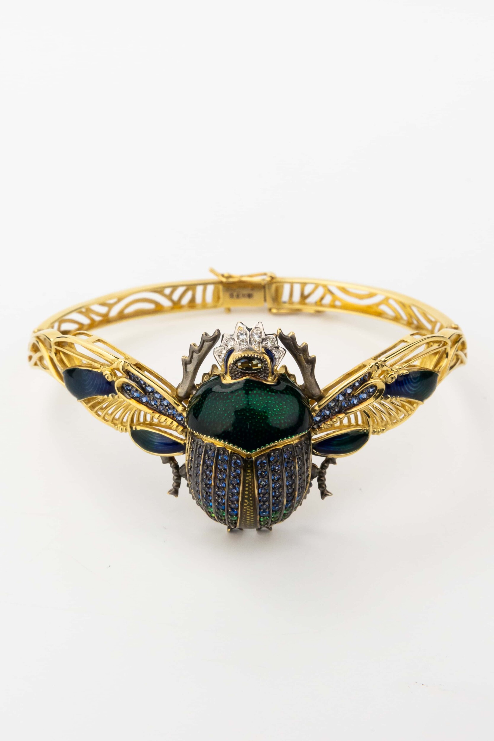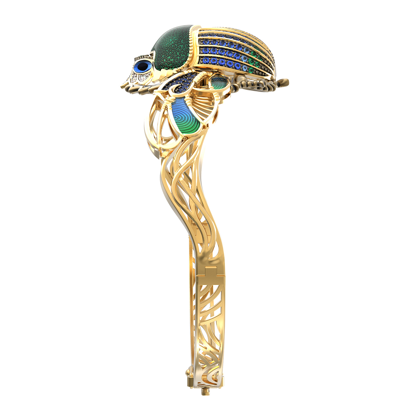 Браслет из лимонного золота c эмалью, фианитом, турмалином и эмалью